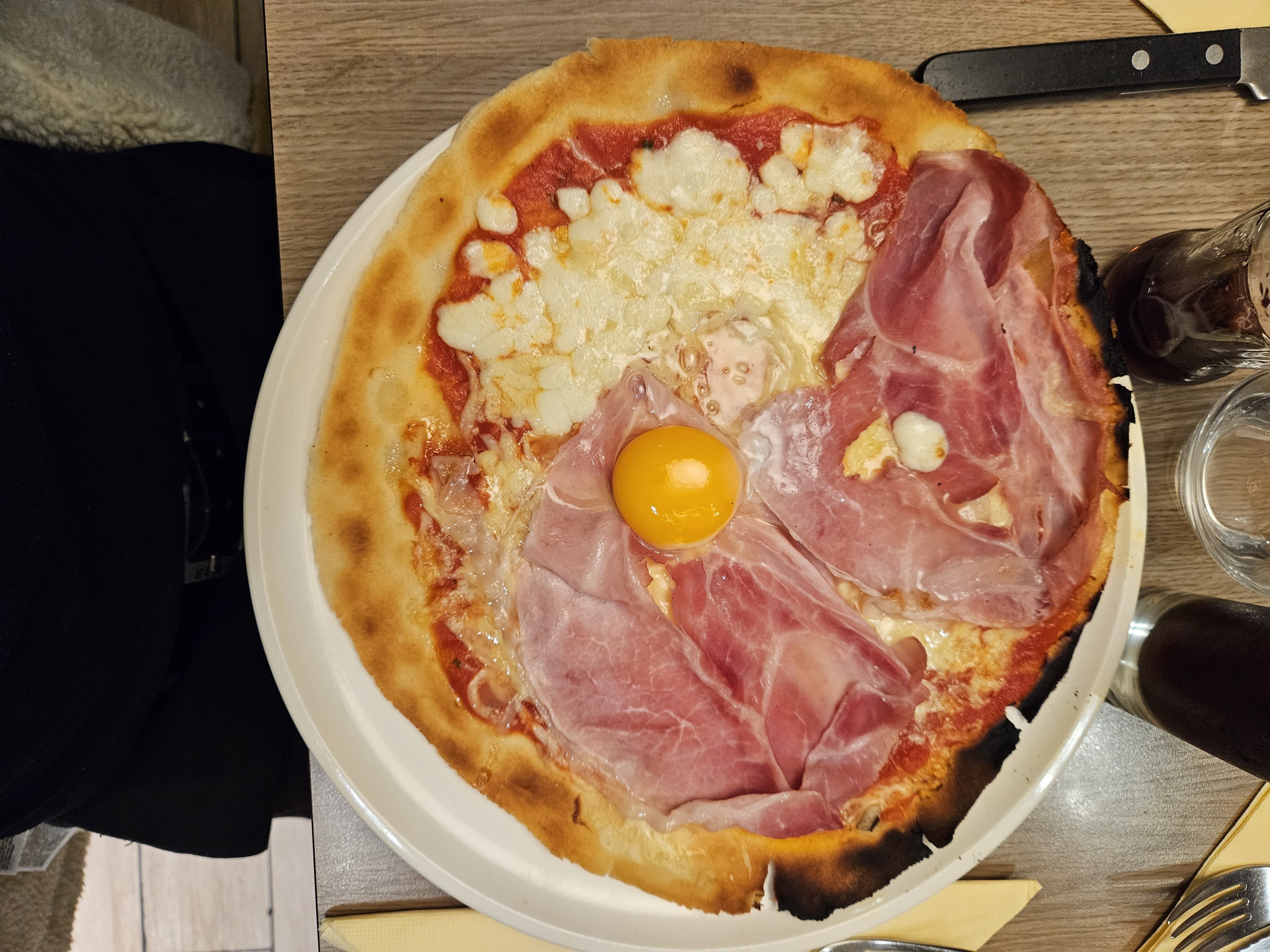 Je suis réconciliée avec les pizzas ! Elles sont délicieuses et la pâte tellement fine ; ambiance décontractée et chaleureuse ; je recommande vivement 👏
