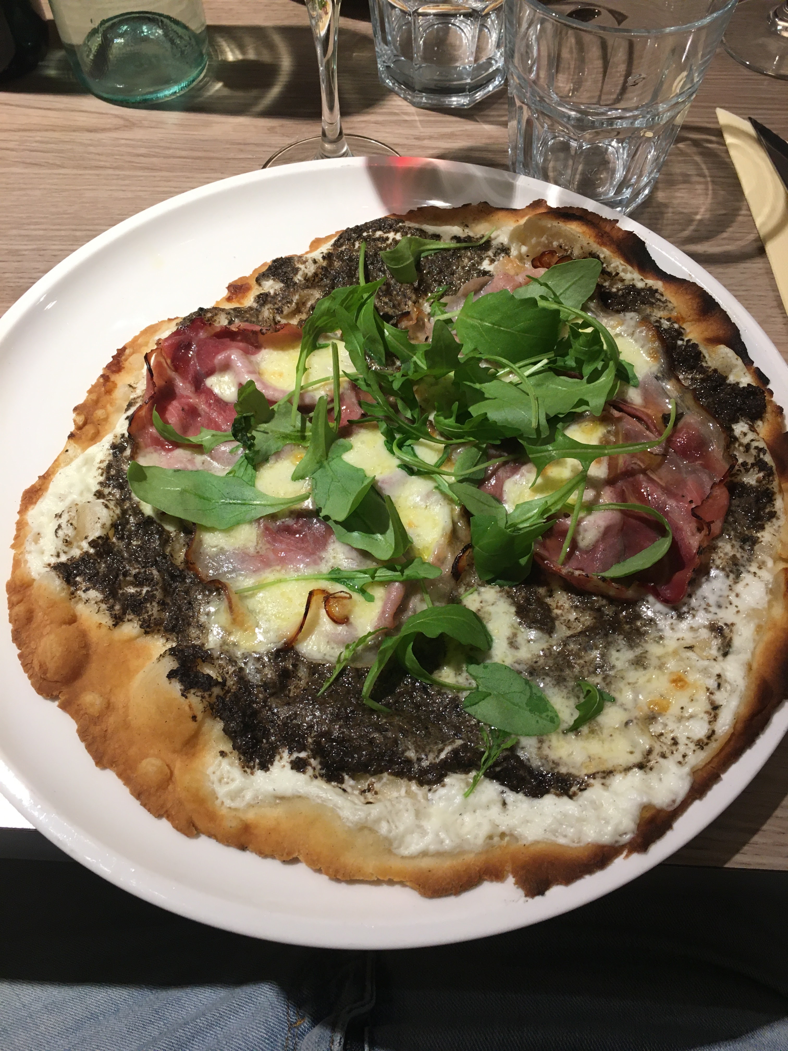 Pour le déjeuner, pris la pizza du jour gentillement proposée. Elle était très bien jusqu'à la sortie. 17€50 une pizza du jour, ça calme.
