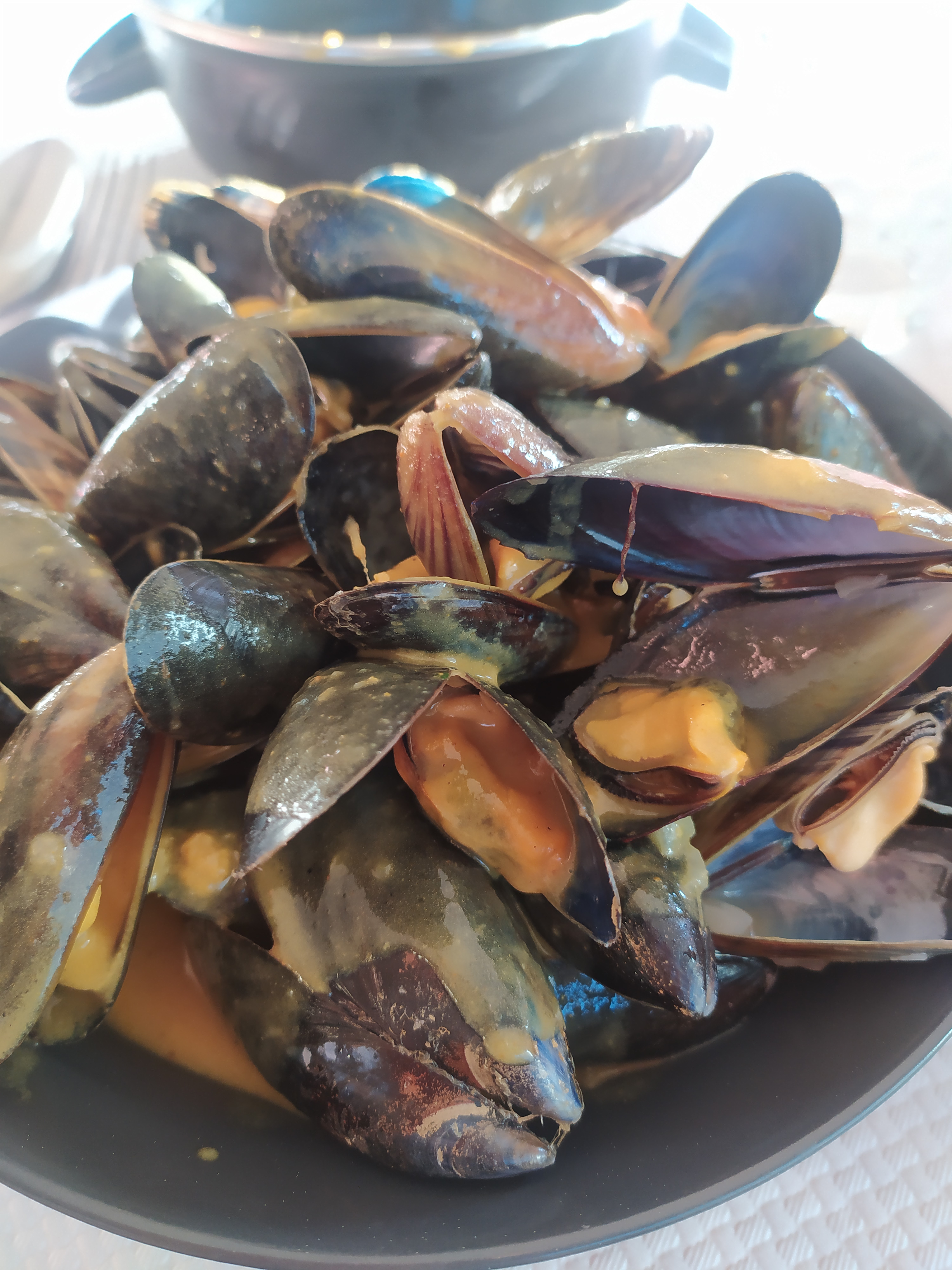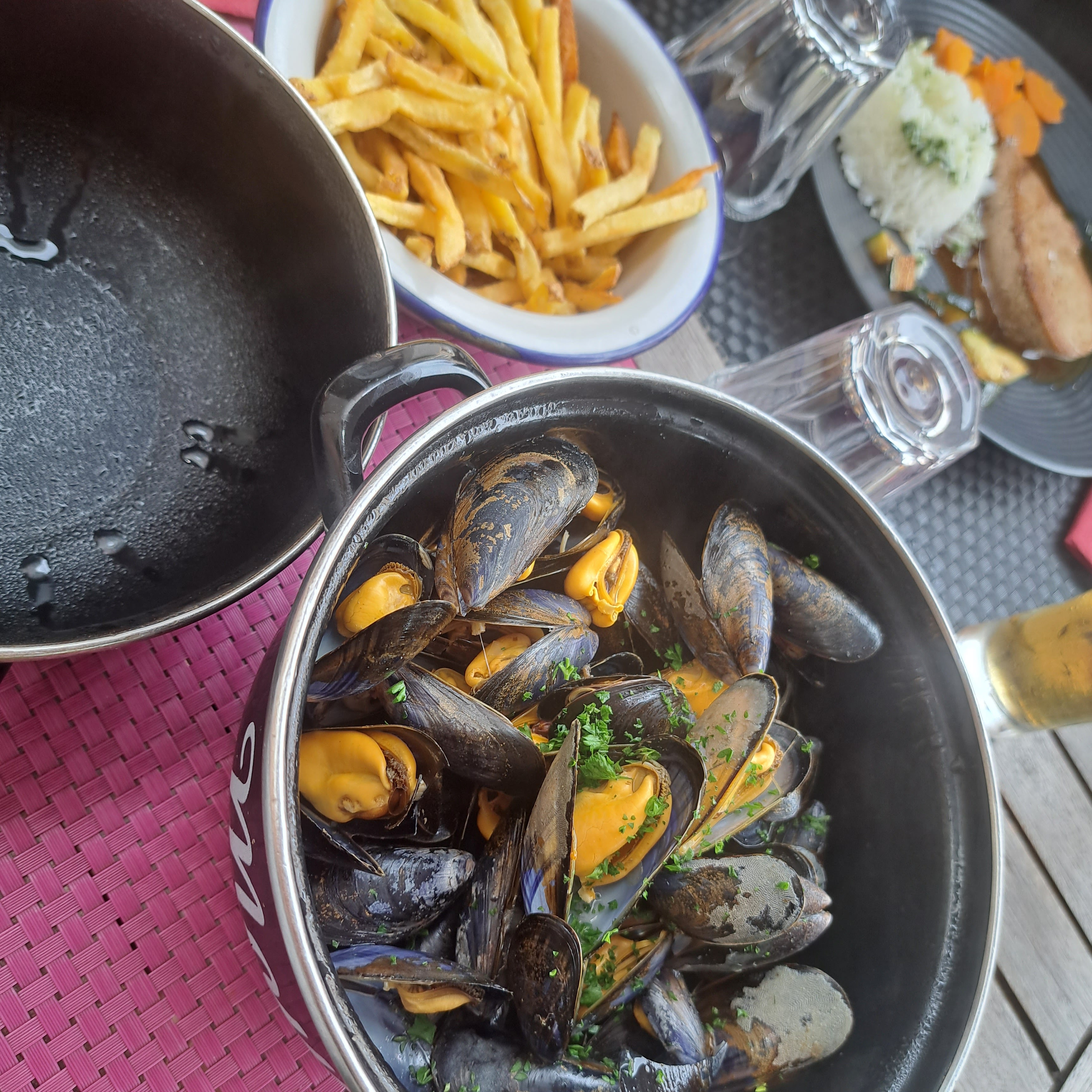 Moules à la crème de curry délicieuses, moules marinières très bonnes aussi. On recommande !