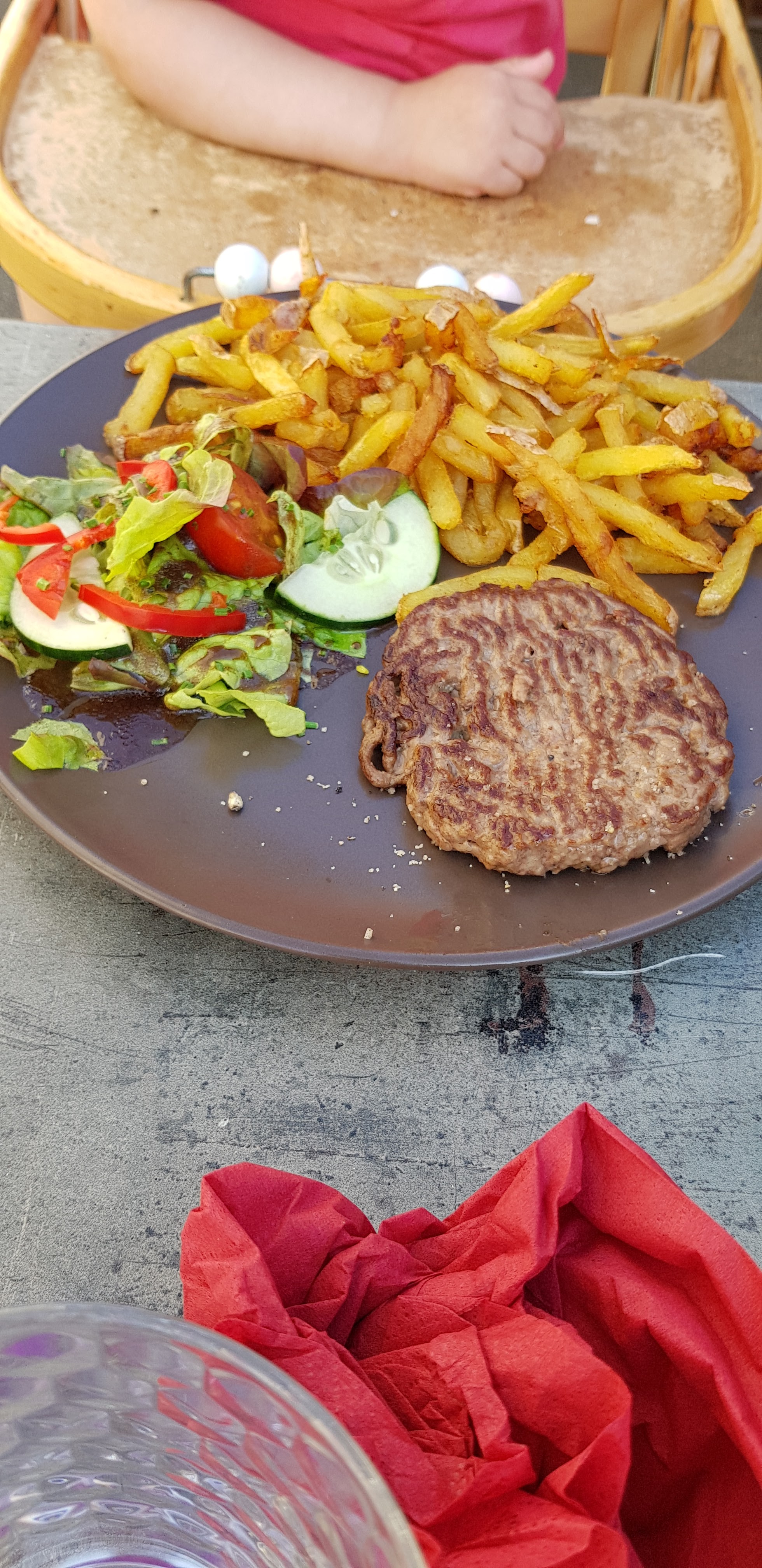 Nous avons choisi ce restaurant, en fonction des avis ! Pas déçu ! Plat copieux, rapport qualité prix au top ! Personnel agréable et souriant avec des petites attentions pour les enfants ! Nous avons également apprécié la localisation, petite rue au calme, c'est appréciable ! Infos pour les jeunes parents ! Ils ont des chaises hautes et des réhausseurs !