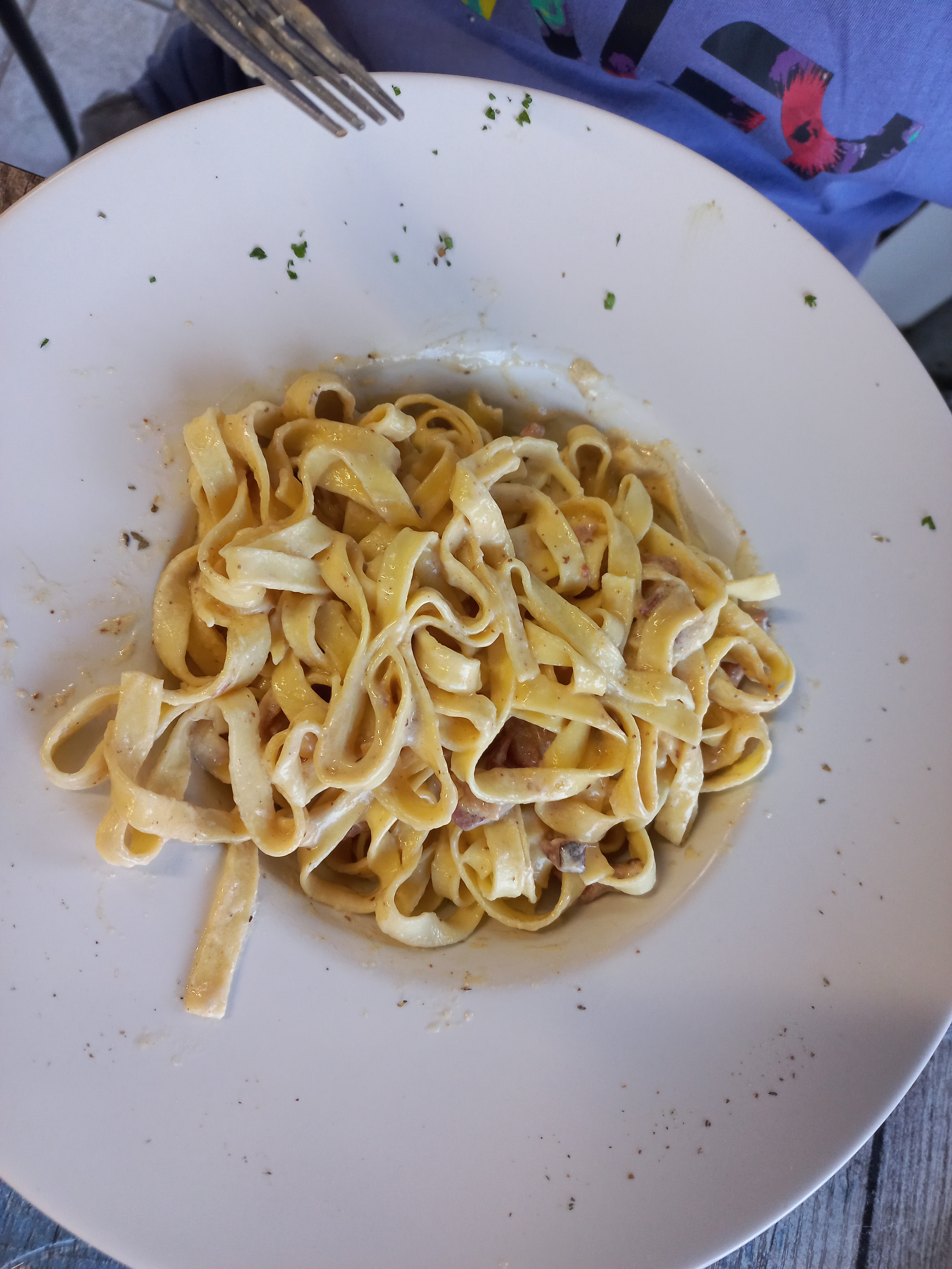 Les ados ont adoré leurs burgers😉 Les tagliatelles a la carbonara étaient délicieuses et les pâtes au saumon etaient bonnes😋