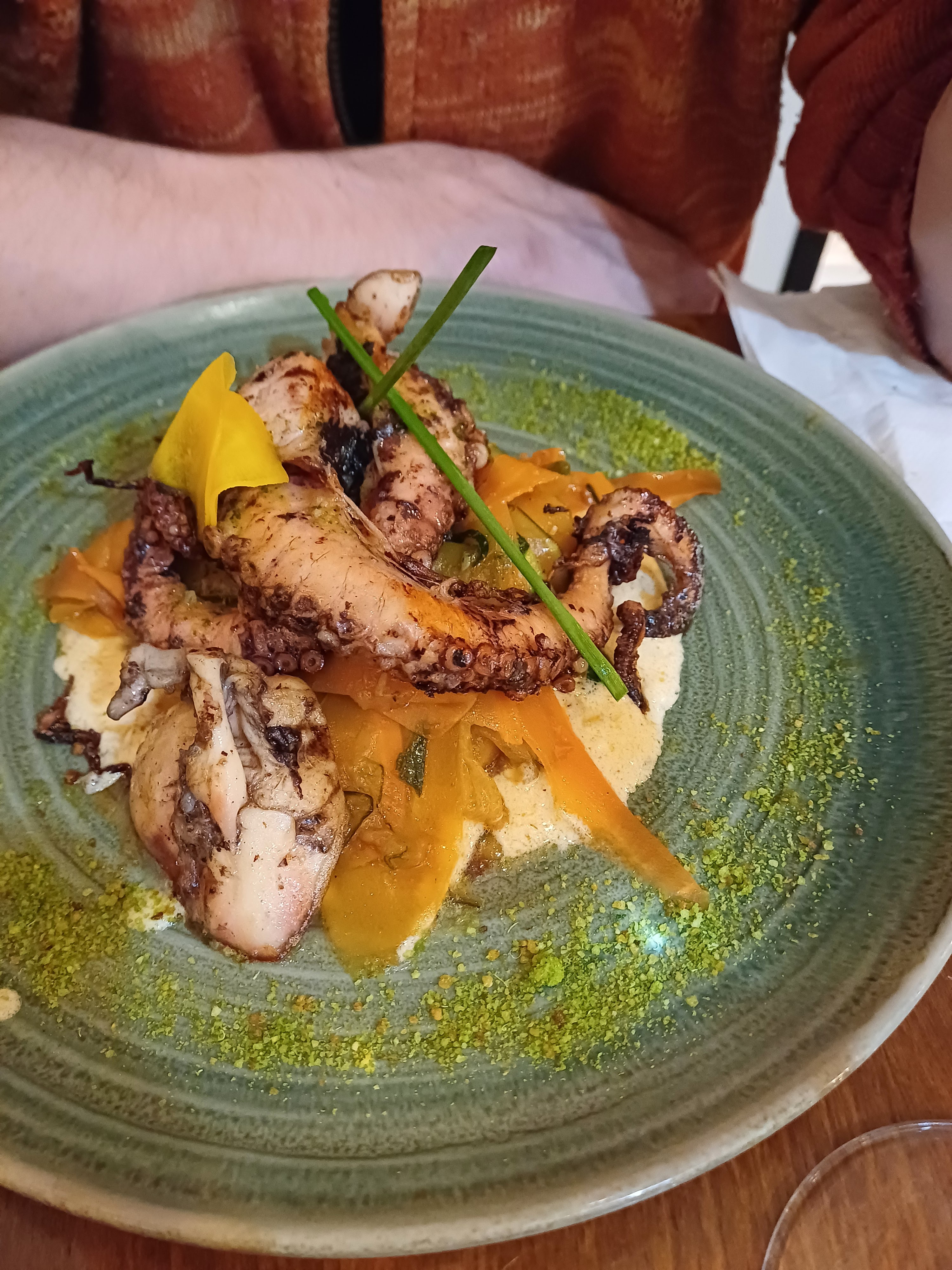 Accueil sympathique, le poulpe et le cabillaud étaient cuits à la perfection mais les sauces étaient de trop et n’apportaient rien, au contraire même. Dommage…