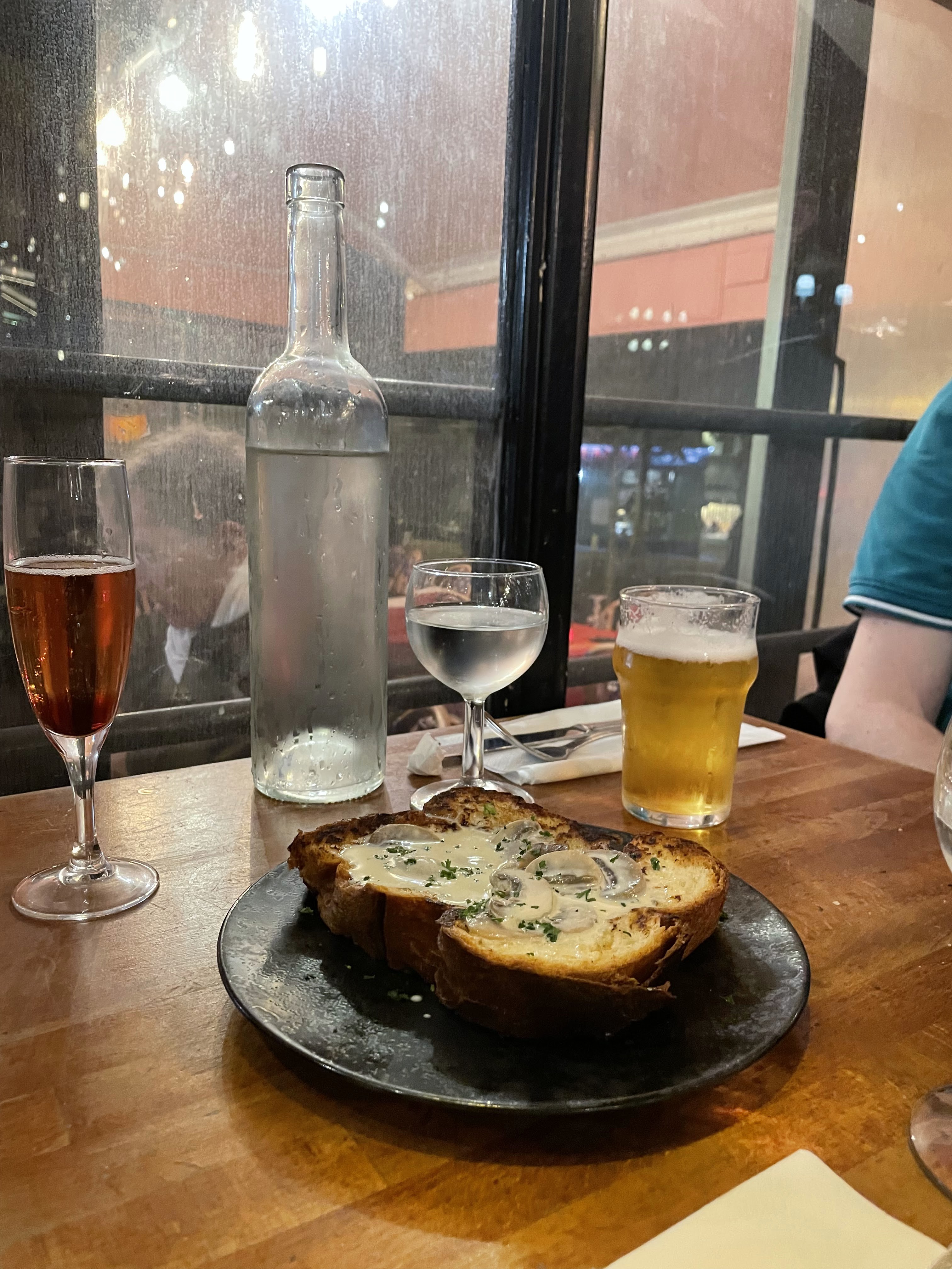 Nous avons apprécié notre repas ici. Le champignon brioché était divin ! Le tartare était très gros et contenait des lanières de betteraves, mais nous pouvions tempérer le goût avec de la sauce tabasco et worcester - nous ne pouvions pas trop finir, d'autant plus qu'il était accompagné de chips grasses. La sélection de vins et de bières était bonne et ils avaient même une version française de Snakebite (bière pétillante). Kir Royale était adorable et mon mari a apprécié sa bière blonde.