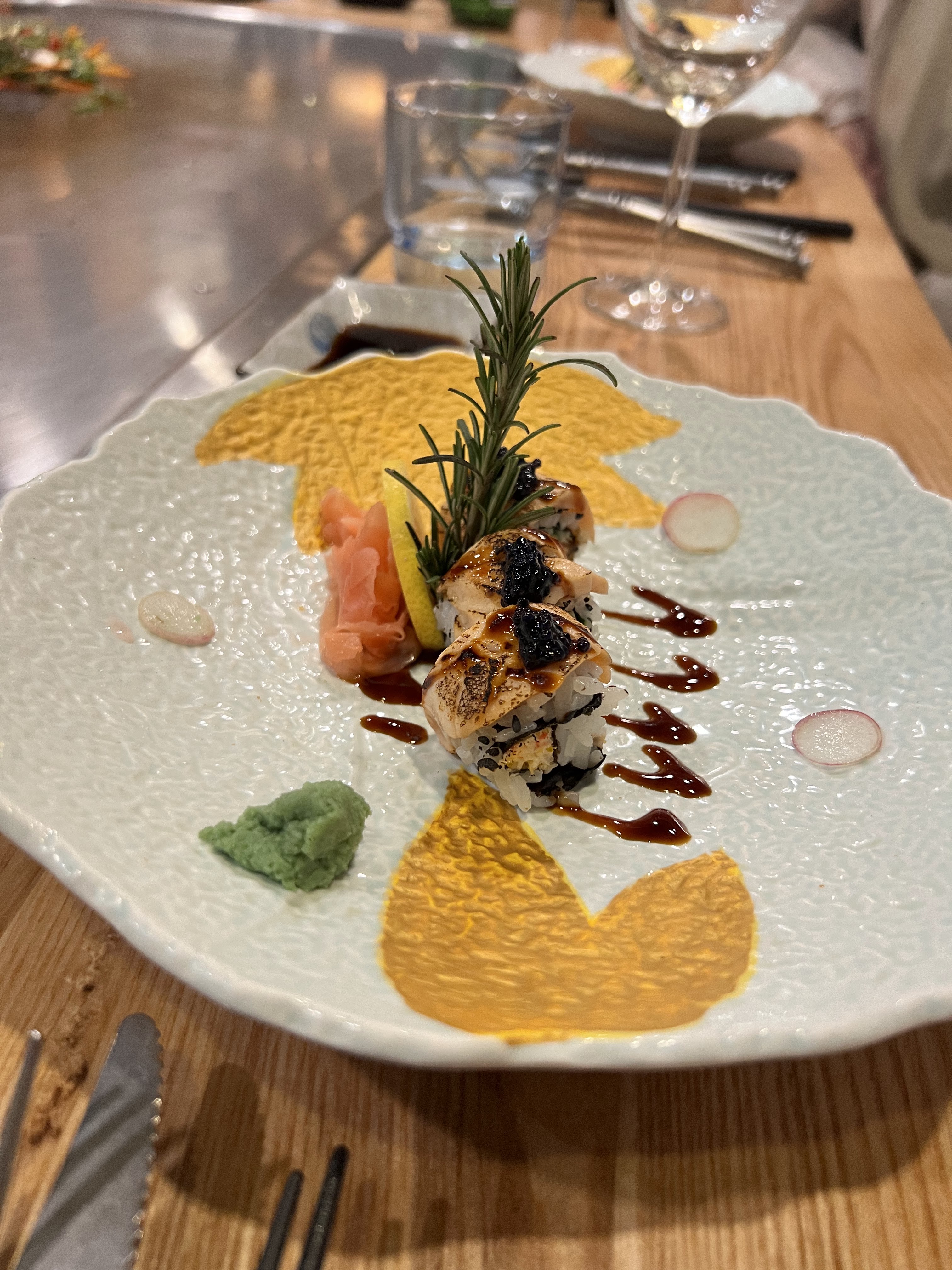 C’est délicieux et spectaculaire !! Nous avons pris un menu yuri, attention on en ressort repus ! Le staff est adorable et très professionnel par contre la réservation est conseillée !