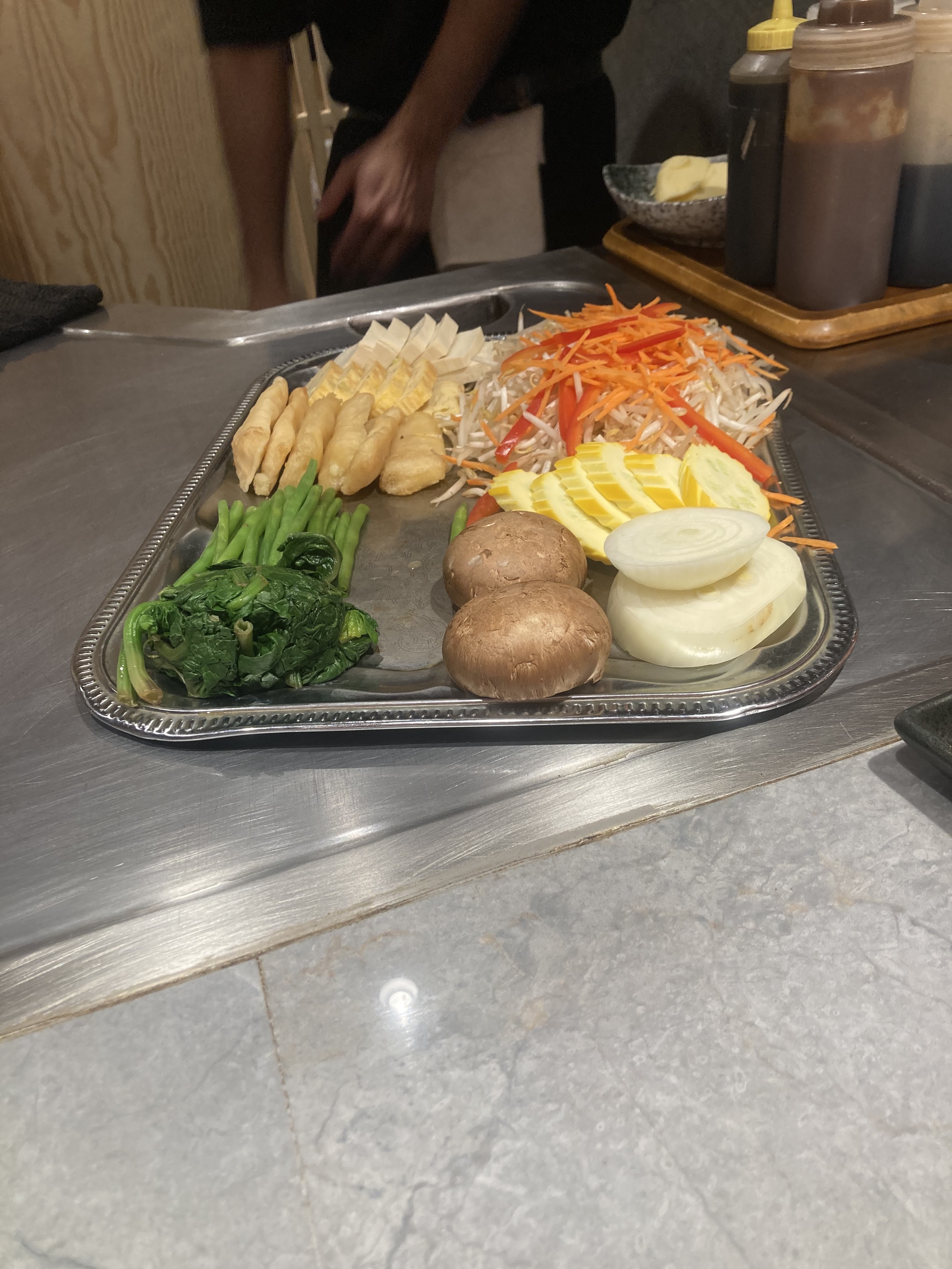 Très déçue pour un teppanyakki. Mon saumon était mal cuit, et présenté en filet; pratique avec des baguettes! Et en plus simplement cuit, aucun assaisonnement en cours de cuisson. Kagakaki Metro Chemin Vert est bien mieux.