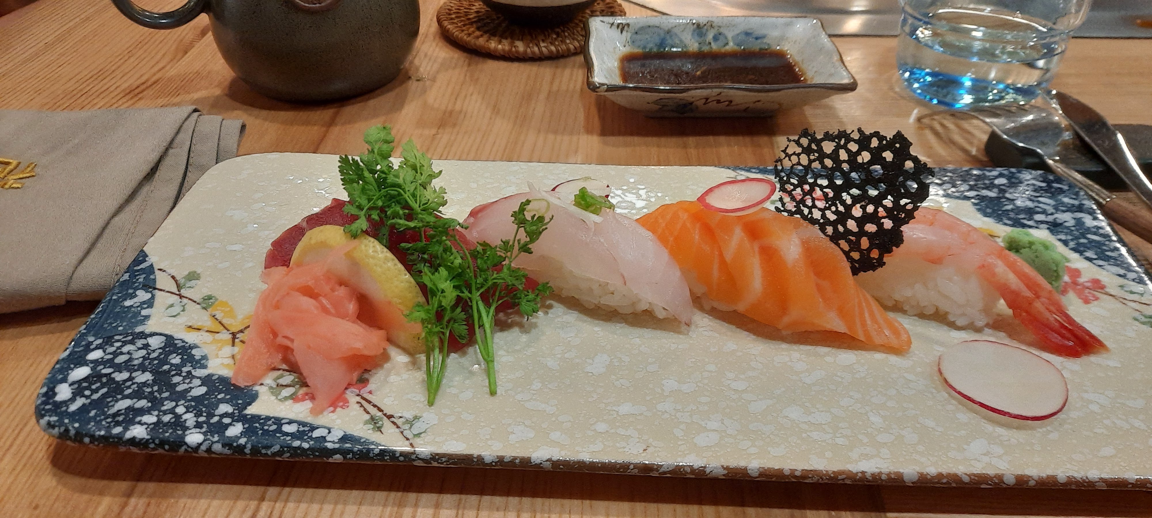 Pour une première dans un restaurant japonais je ne suis vraiment pas déçu c'est tout ce à quoi je m'attendais le service le spectacle et la qualité de ce que vous avez dans l'assiette et au top je reviendrai sans problème dès que possible avant maintenant y aller n'hésitez pas!!!