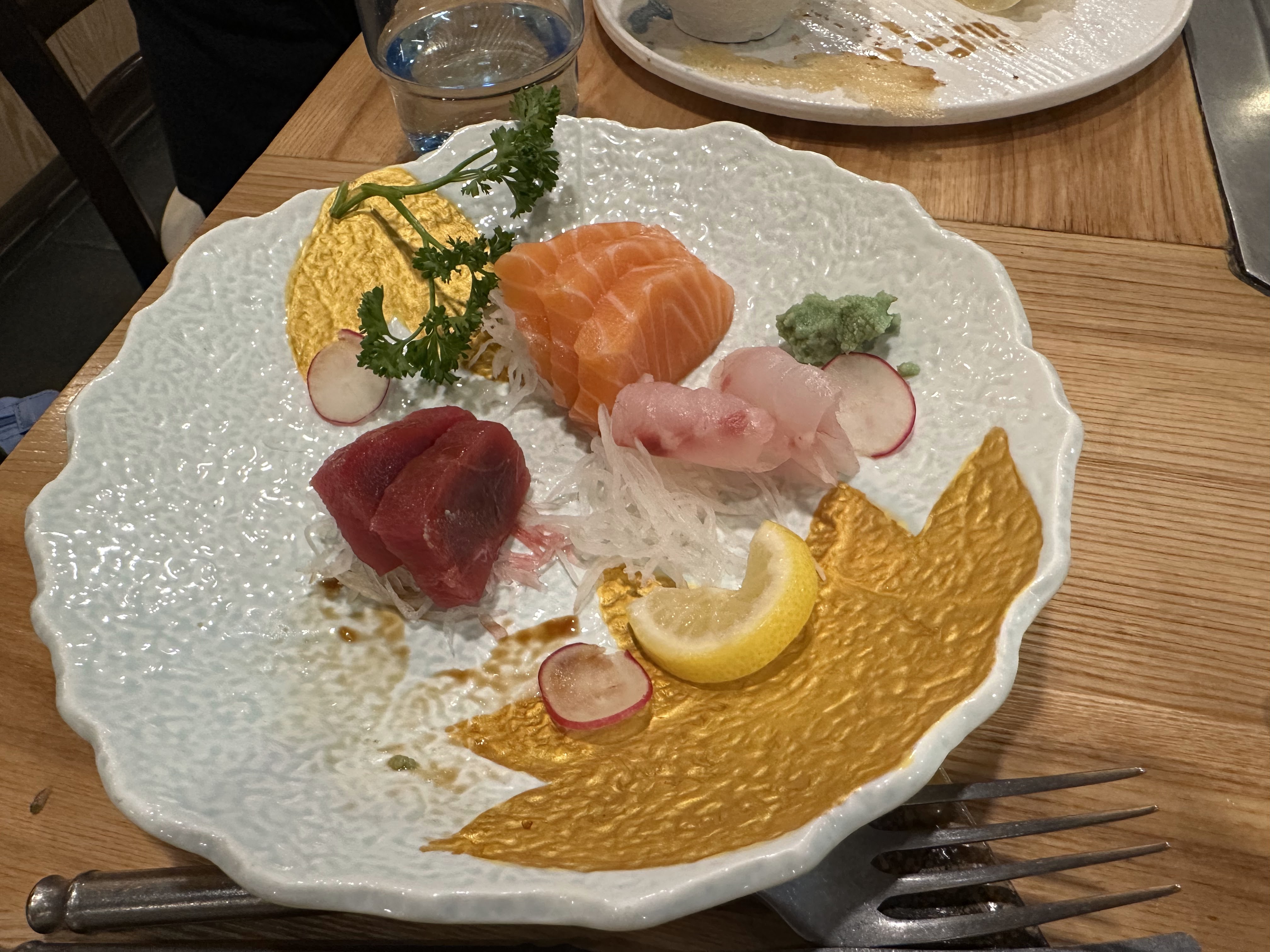 J’ai mal au coeur de ne mettre que 3 étoiles à un restaurant où je mettais la barre très haute. Tout d’abord de vais commencer par les points positifs.. -très bel emplacement bien localisé, quartier agréable, -joli restaurant où le dépaysement opère (la beauté du restaurant, la tenue des serveurs..) -accueil agréable -serveurs organisés -la beauté de la préparation des mets. C’était artistiquement beau. Néanmoins j’ai été très déçue des morceaux de carpaccio de thon dans mon assiette.. l’intérieur était à moitié congelé.. heureusement en trempant dans ma sauce c’était mangeable mais quand même.. Je fus déçue aussi du dessert du jour.. la salade de fruit ressemblait tout droit à des fruits issus de boîte de conserve.. Il y a juste la glace au thé vert qui était très bonne. Dommage .. J’aurai bien aimé à voir affaires à des japonais comme l’origine de la cuisine. Seule la patronne l’est.