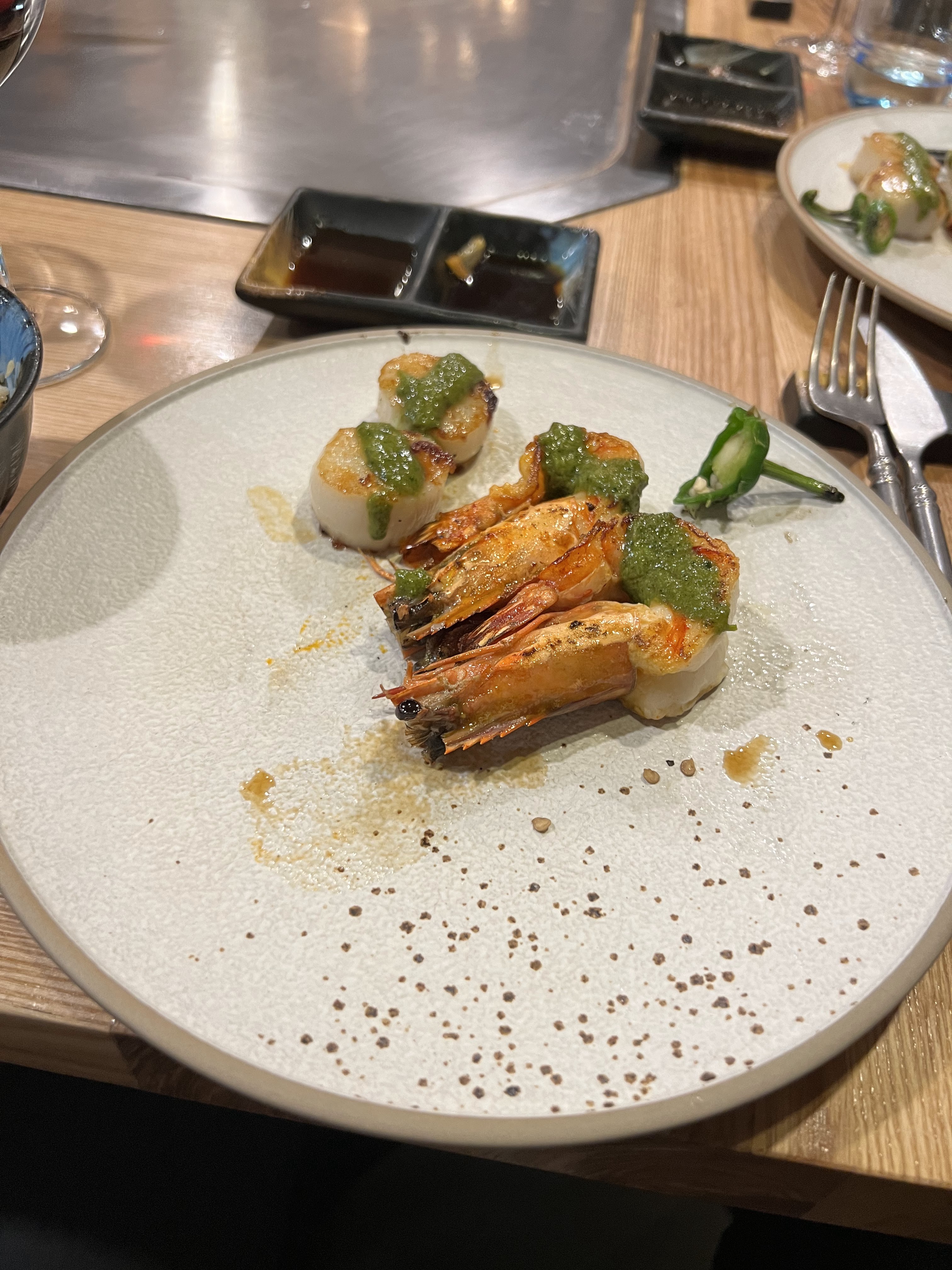 Beau restaurant et la nourriture y était très bonne. En revanche, je m'attendais à retrouver ce que j'avais retrouvé dans un autre teppanyaki c'est à dire une sorte de petit spectacle du cuisinier ou au moins qu'il nous explique comment il cuisine, des anecdotes sur les produits etc là il ne parlait quasiment pas français. Ce n'était donc pas propice aux échanges avec nos voisins de table...dommage, parfois l'expérience est plus importante que la nourriture elle-même, qui soit dit en passant était assez chère...