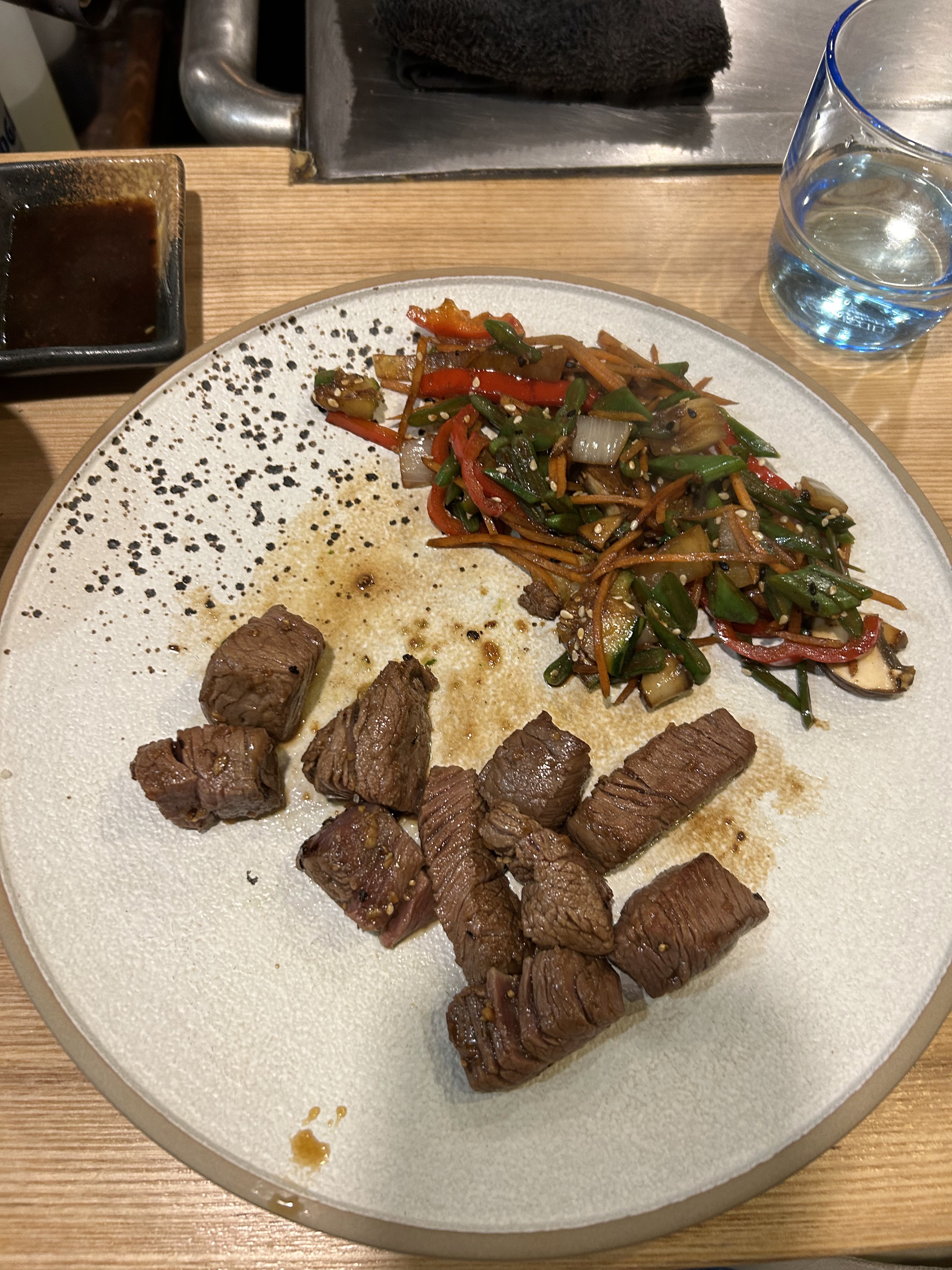Teppanyaki pas trop mauvais sans être exceptionnel mais il ne faut pas être assis à un mauvais endroit car l’aération n’existe pas et vous allez sortir de ce restaurant plein d’huile et d’odeur sur vous. C’est dommage. Dans d’autres restaurants Teppanyaki, c’est beaucoup mieux aéré.