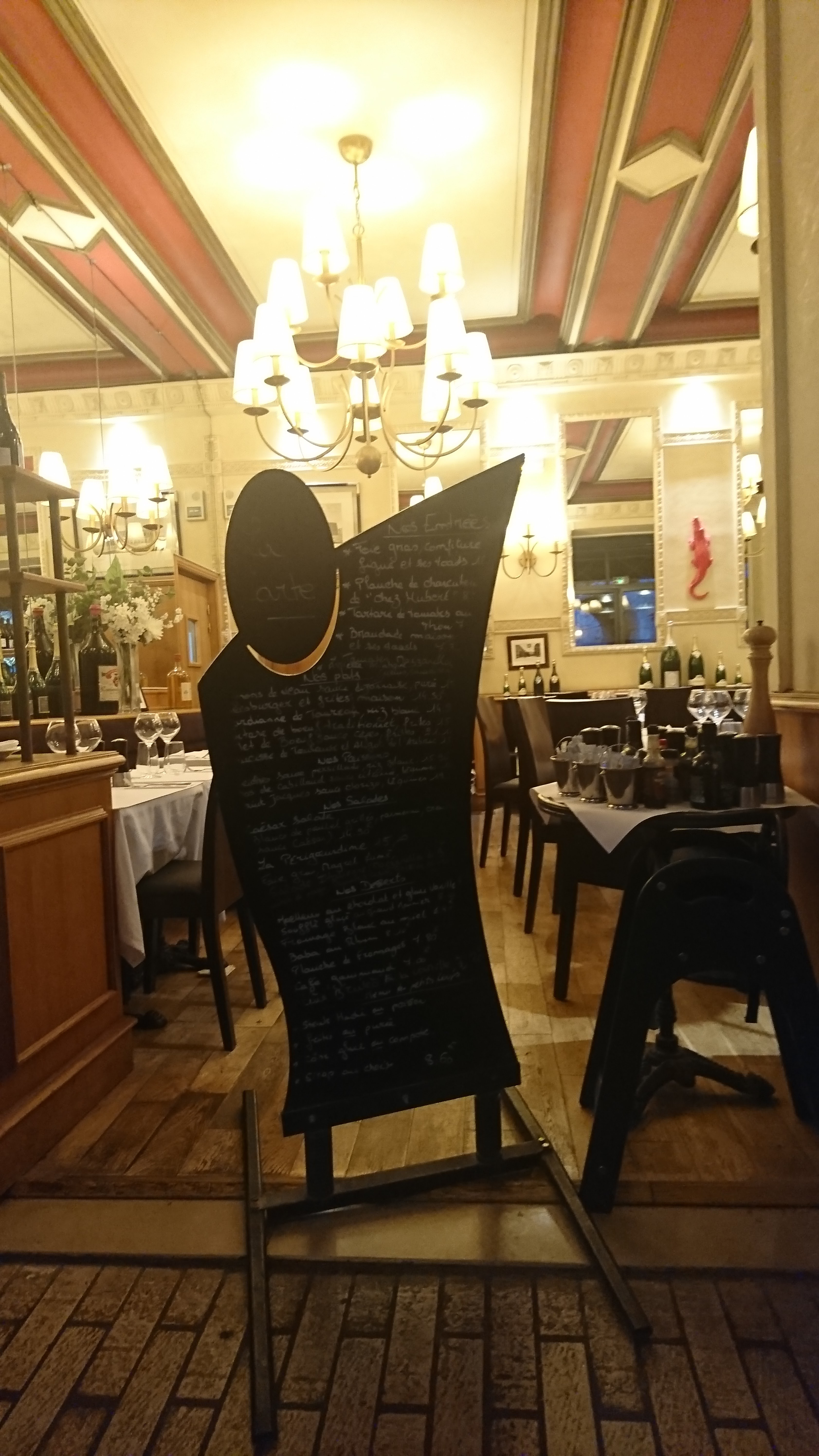 Resto type brasserie parisienne. Mets excellents.. Un hic...par pitié mettre un ralentisseur a la porte des WC qui claque sans arrêt des qu'un client rentre ou sort...