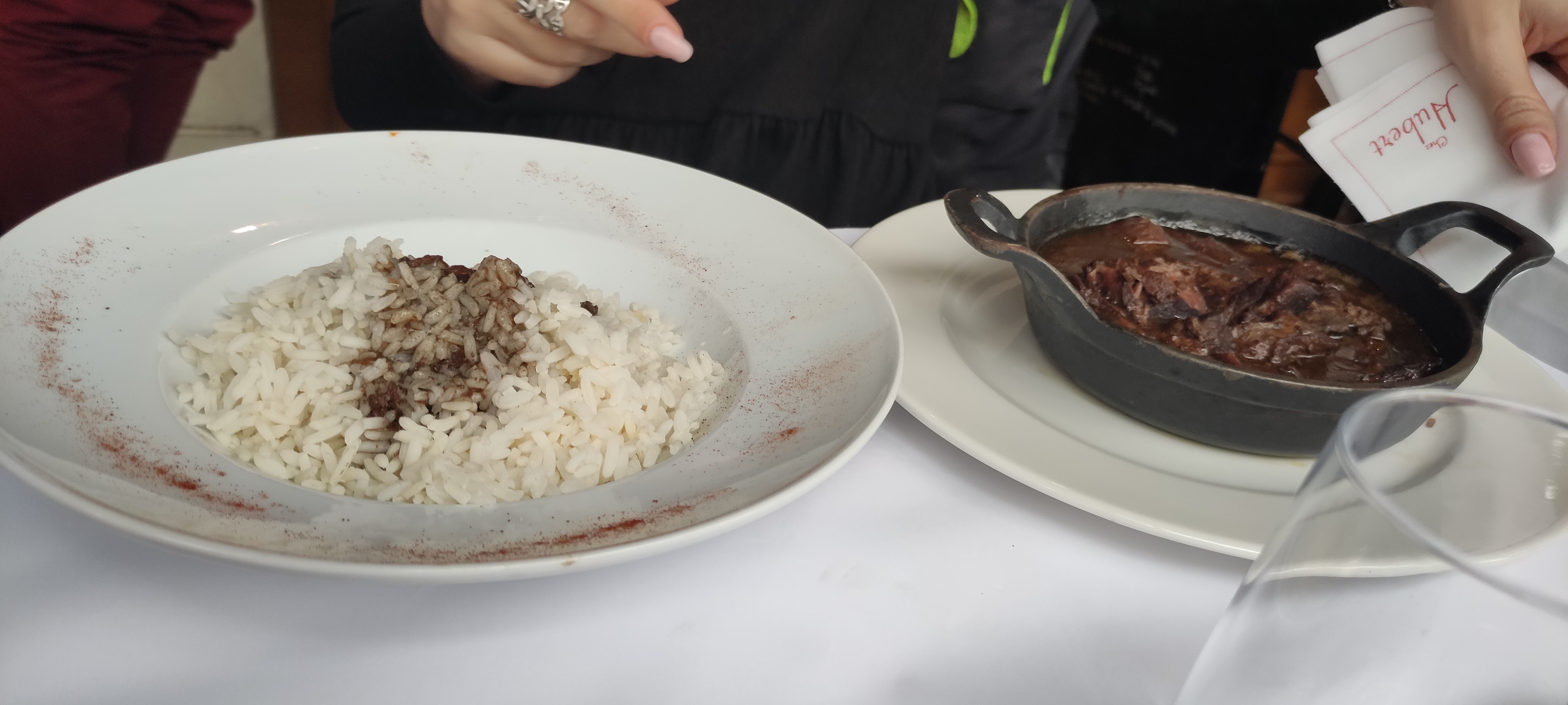 De passage a Nîmes pour le spectacle germanicus La Guardiane de taureau est excellente (je l aurai fais mijoter encore un peu ,car qql morceau encore dur) Mais c étais très bon Avec le riz(simple en présentation, j y aurai parsemé un peu de persil haché) Vin sans carte Et sans prix Domage