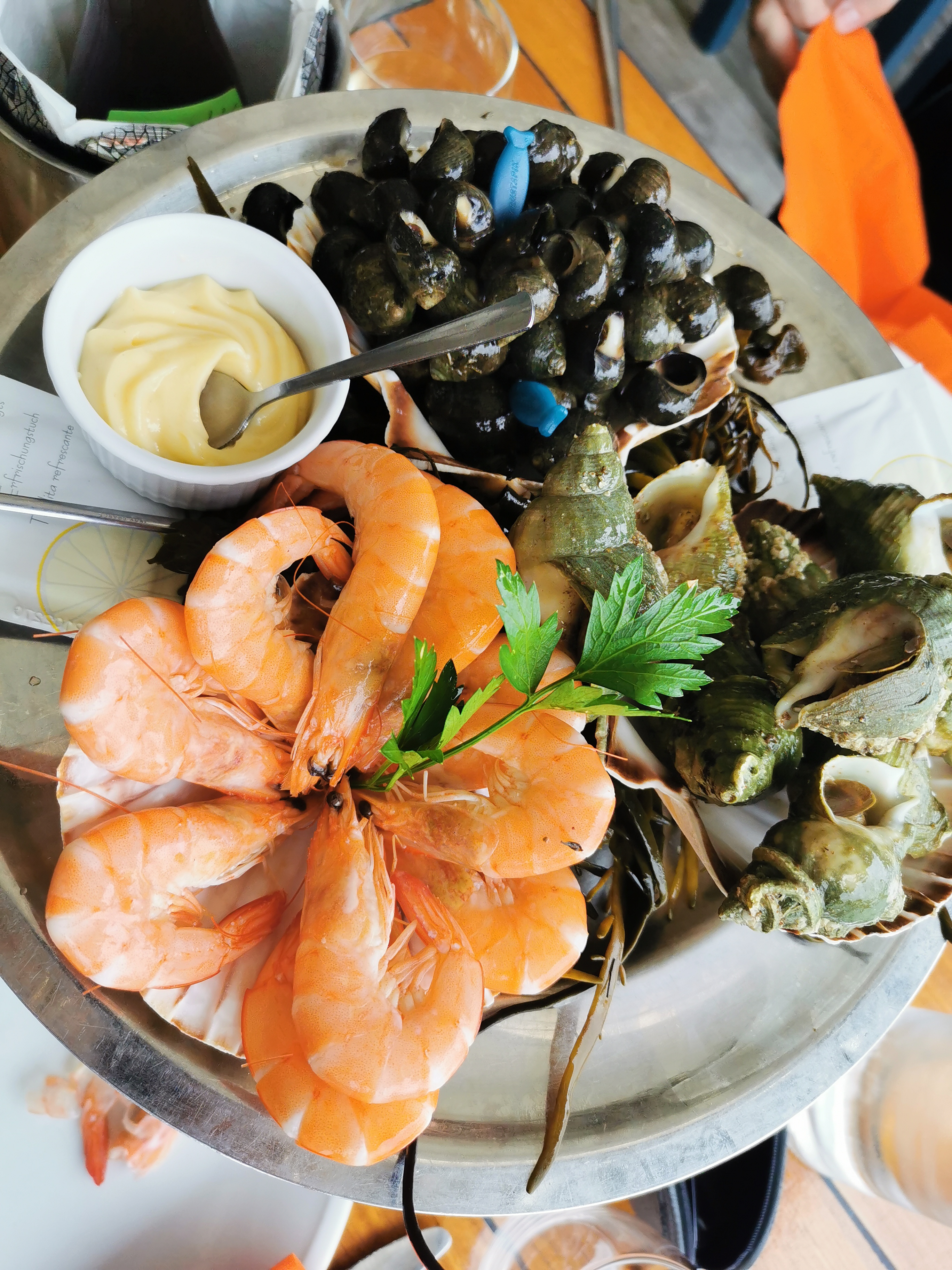 Plateau de fruits de mer exceptionnel. Cadre idéal pour savourer des fruits de mer.