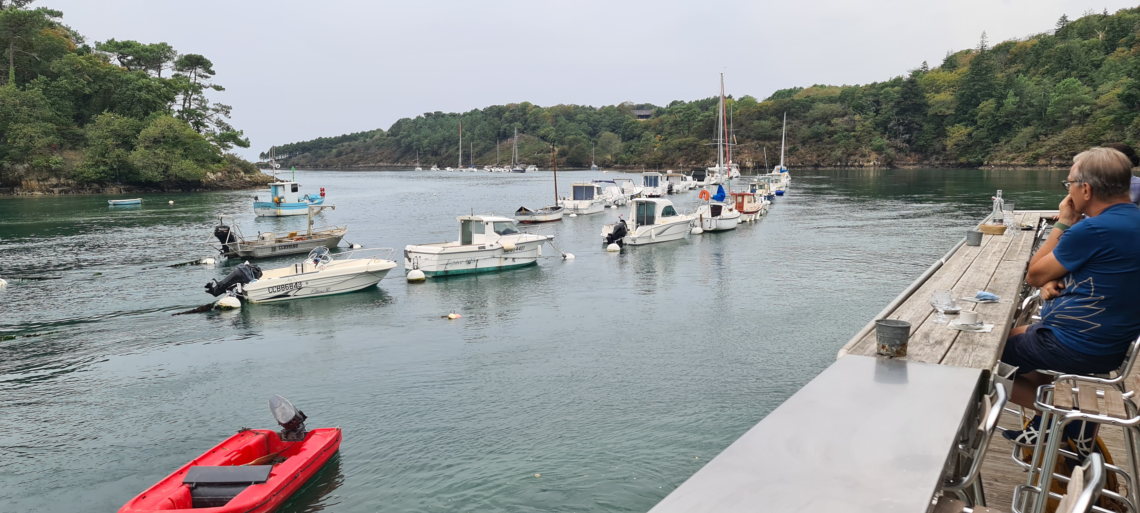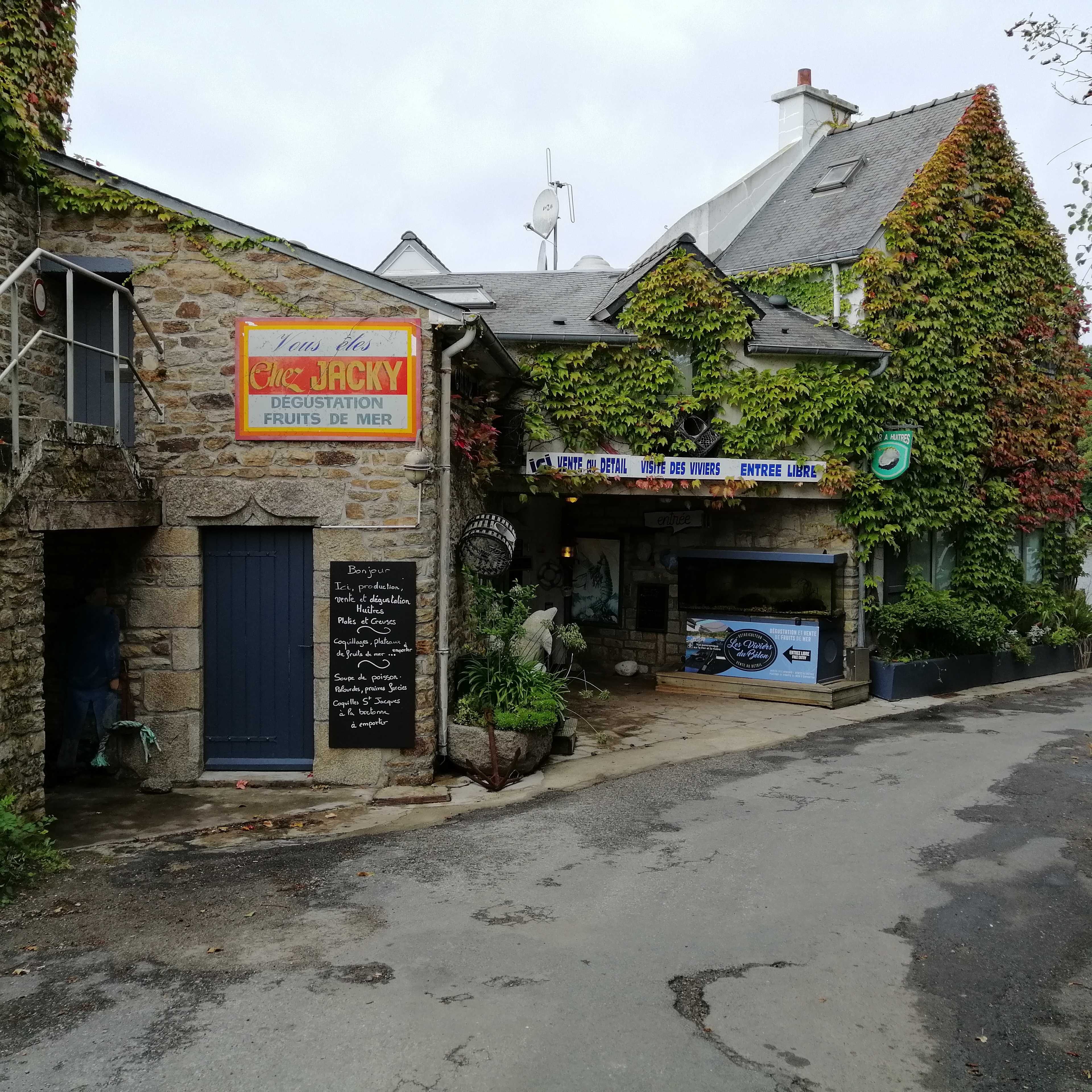 4ème expérience chez Jacky. Top il y a 20 ans. Il y a 4 ans, très décevant ( réservation 4 jours à l'avance mais avons été placé dans l'entrée et non dans la salle) En juin accueil peu cordial et note salée pour quelques huîtres et terrines de poisson. Aujourd'hui accueil toujours peu avenant. Si vous venez en bateau achetez juste les huîtres (avant 19h) et votre bouteille de muscadet et dégustez le tout sur votre bateau. Vous aurez une vue aussi belle, les huîtres sont très bonnes quoi que un peu charnues. En conclusion ne faites pas escale dans le belon pour le restaurant. Par contre l'endroit est magnifique et le capitaine du port est très très sympa!