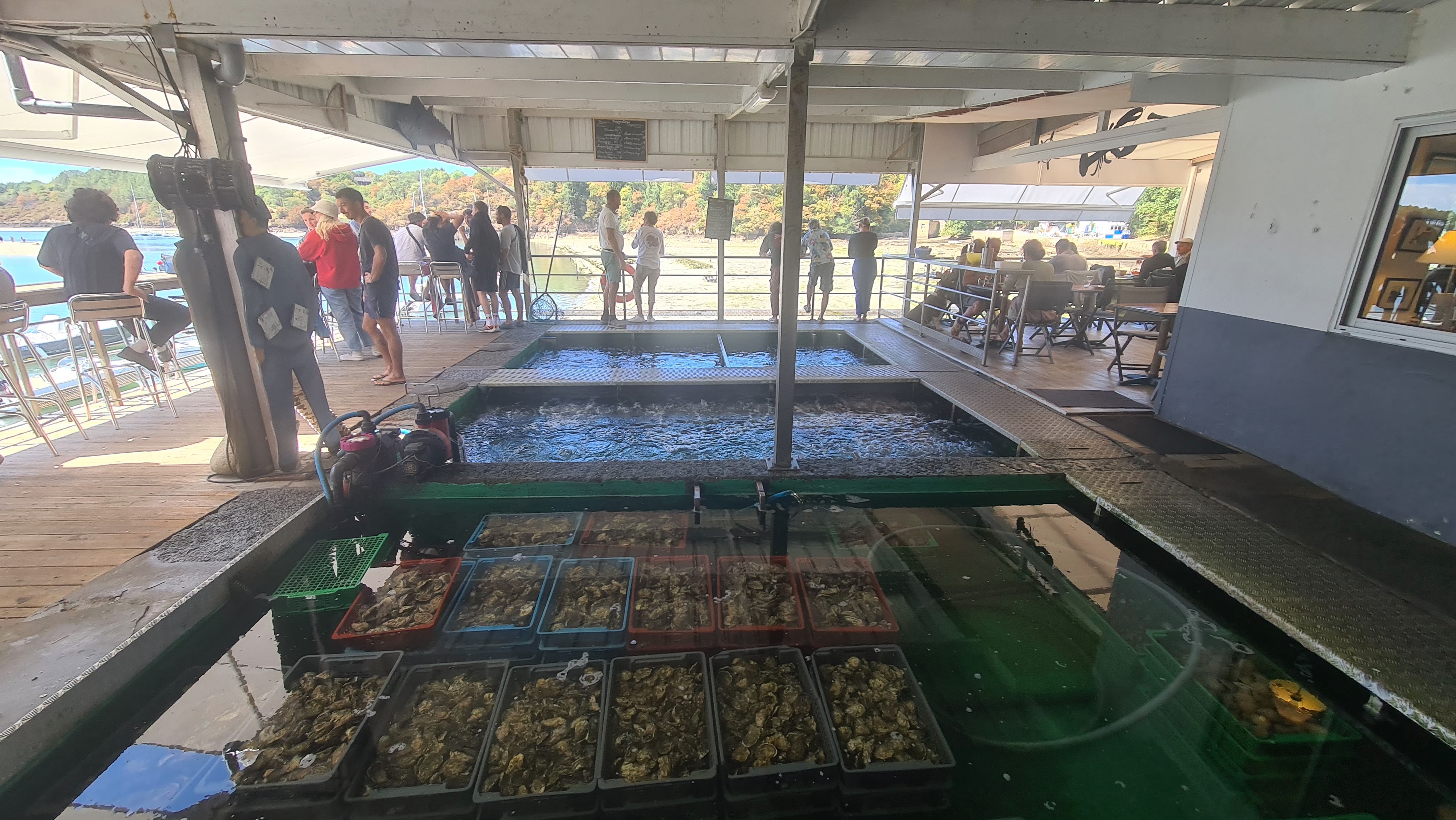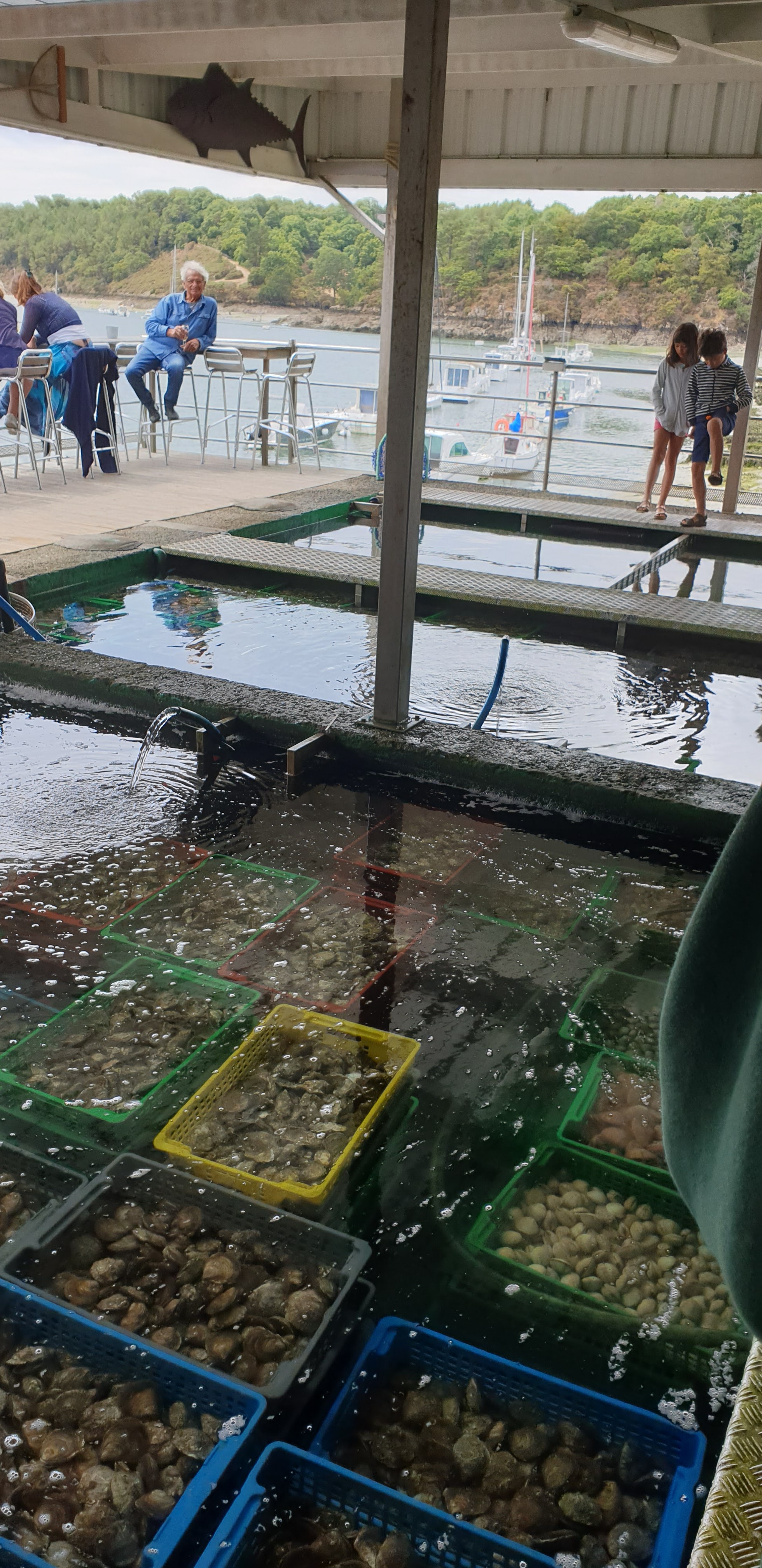 Lieu sympa où on peut voir les viviers d'huitres et de crustacés. En revanche on a vraiment été dérangés par les mouches pendant le repas. Les amateurs de Belon y trouveront leur compte, à titre perso ce ne sont vraiment pas mes huitres préférées mais ça c'est question de gout personnel.