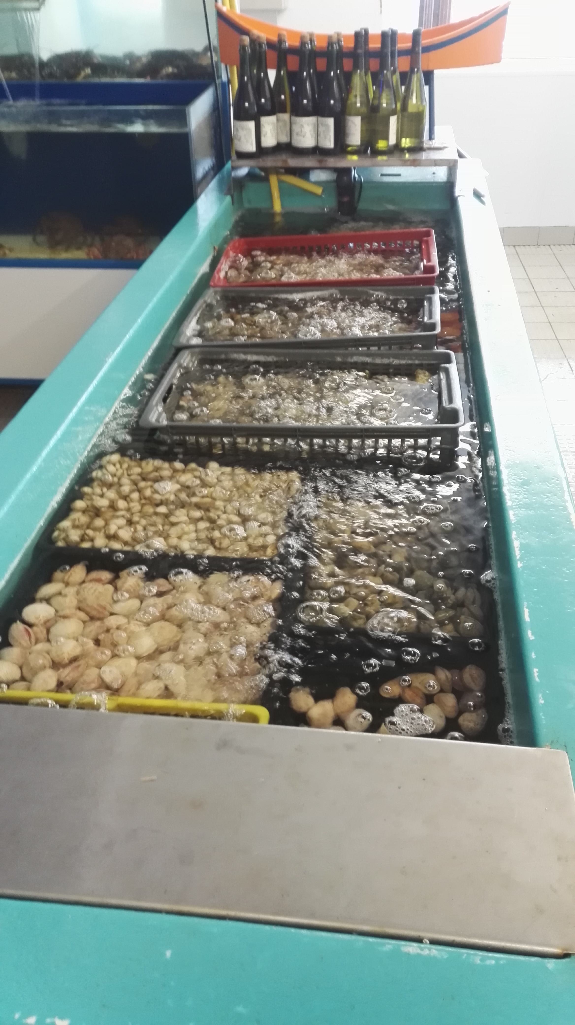 Nous avons commandé 1 assiette d'huitres(12) 6 de chaque... 1 plat individuel de fruits de mer. Tout a été servi sur le plateau de fruits de mer , ii manquait des huîtres plates.. 1 huitre pas fraiche rejetée par mon époux. Nous avions réservé pour 12h30 et sommes sortis de table à 15h30!! Ardoise salée. Pas un mot d'excuses. Très déçue .