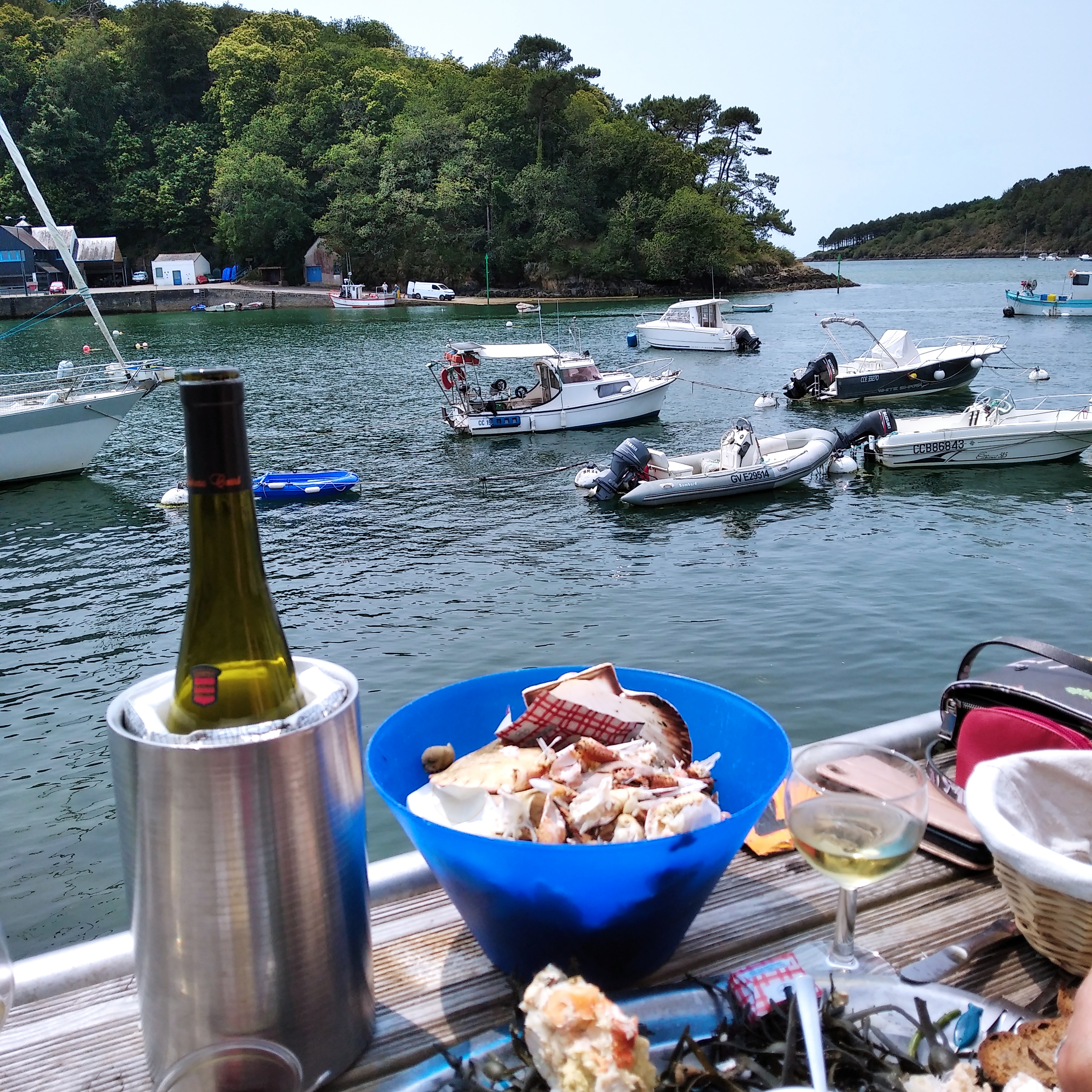 Une belle surprise !! Le Port du Bélon, Finistère Sud, spécialité : les fameuses huîtres plates, les belons. Le restaurant Chez Jacky est situé en bordure du port et nous déjeunons au bord des bassins du vivier avec huîtres, araignées, homards, coquillage, tourteaux.... Plateau de fruits de mer comme on les aime (voir photos) Service impeccable. Un lieu magique !!