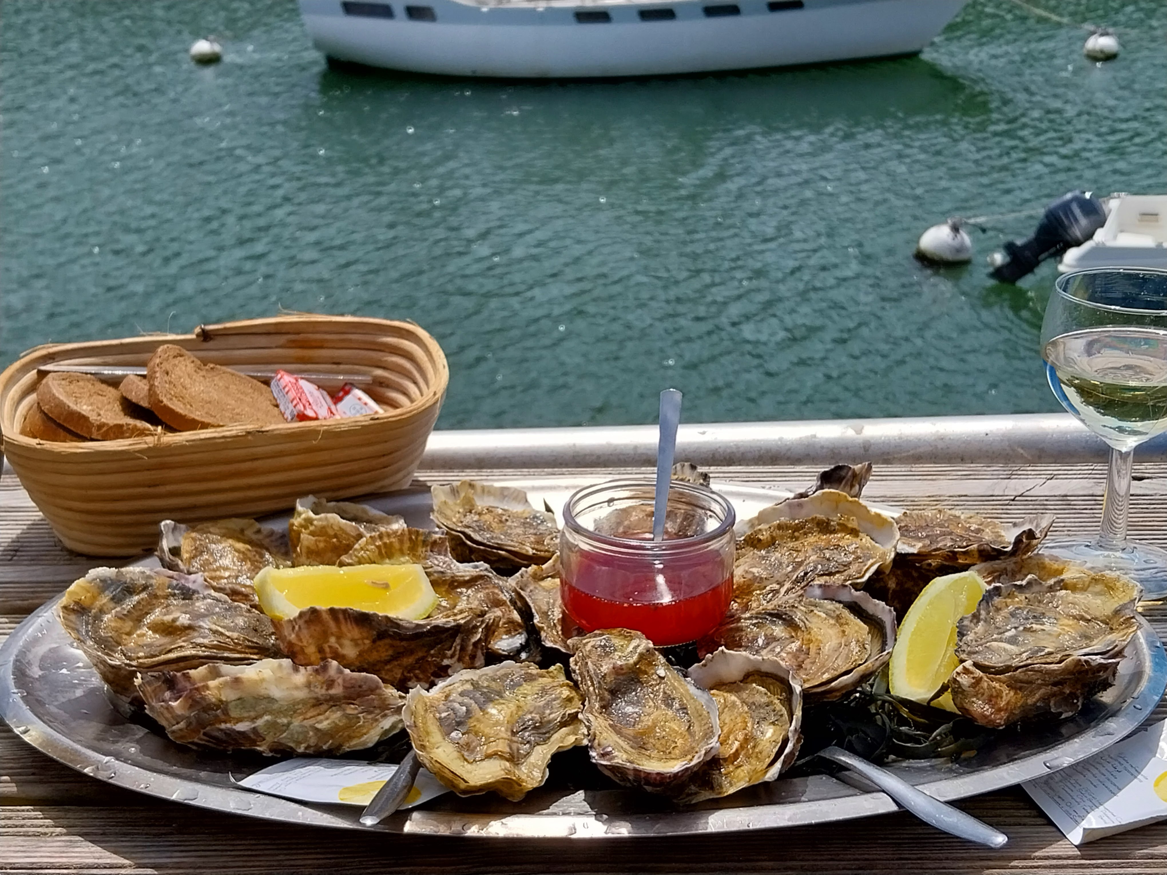 Nous avons fait une dégustation des huîtres de Bélon avec une vue magnifique sur le port. Nous nous sommes régalés et conseillons vivement chez Jacky.
