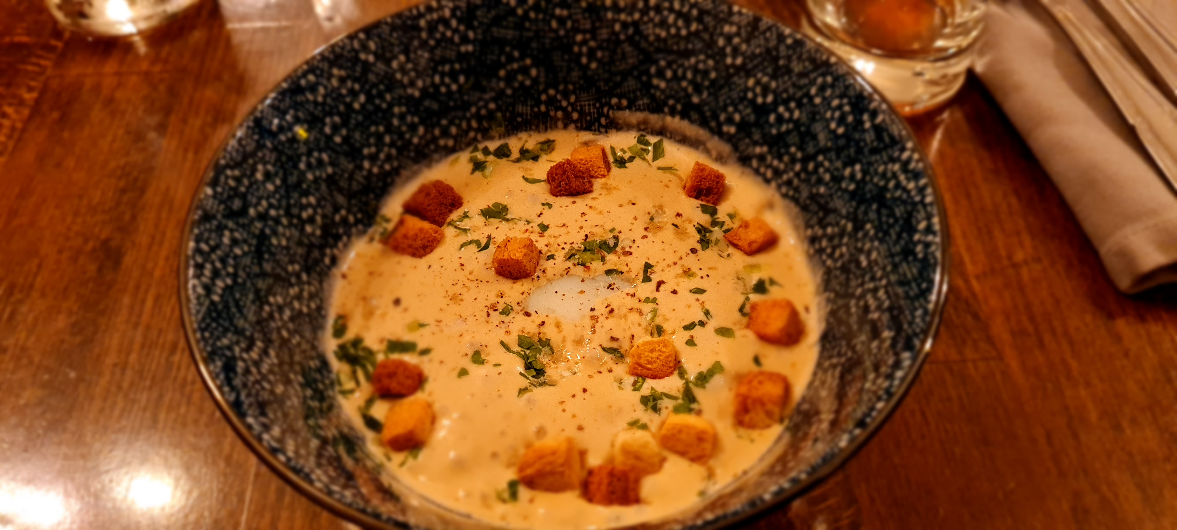 Très jolie surprise après une grande journée de plein air. L'oeuf parfait est parfait. Le cabillaud très délicat. Les blancs au verre bien assortis. Service attentif et rapide. Merci !