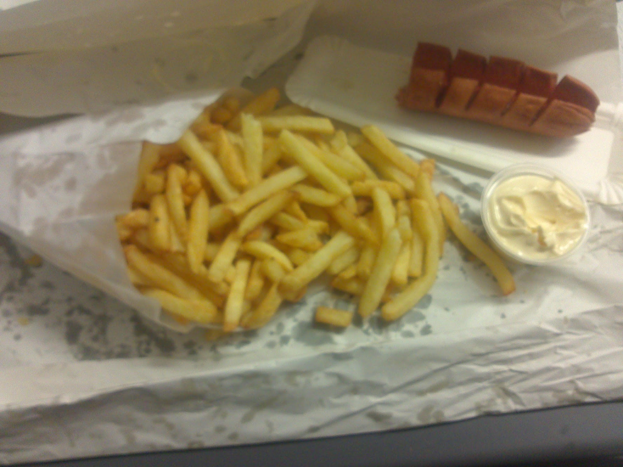Bonnes frites, possibilité de manger sur place, service rapide