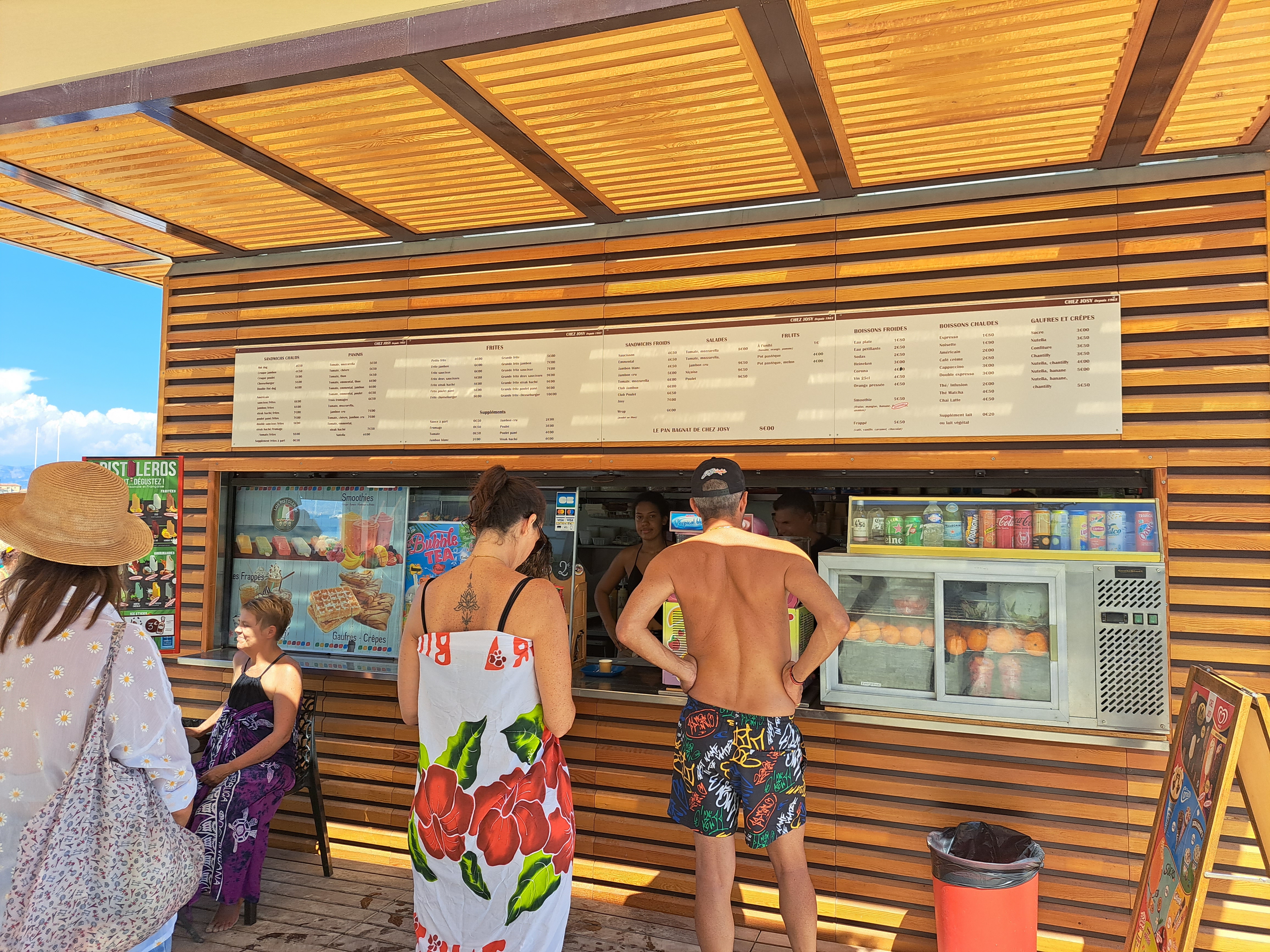 Chez Josy. C'est une institution, les meilleurs Pan Bagna à Antibes,. Mais aussi d'excellents hot- dog avec frites maison, et des Paninis . Que des produits frais, et un accueil chaleureux. Une ambiance familiale. A bientôt.
