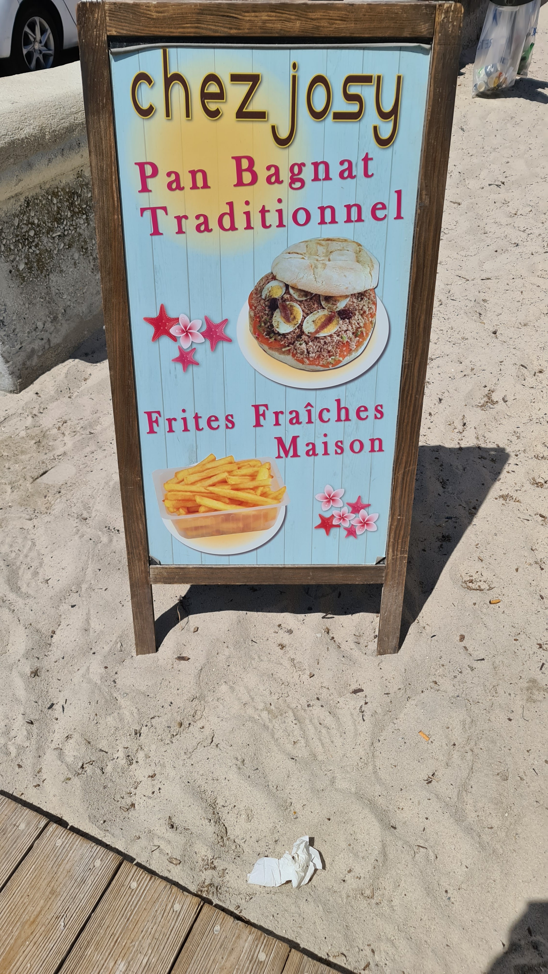 L’institution Chez Josy est-elle toujours le haut lieu du PanBagna et des frites maisons !? Des années pour ne pas dire 3 générations à venir à la « baraque » nous avons connu toute la famille. Mais alors maintenant, très mal reçu ! Plus de Pan bagna et les frites sans sauces. Je retourne et on me sort « c’est en supplément 1€ » 😳… Le lendemain commande de Pan bagna : un peu sec, les frites moles et farineuses… où est passé notre Josy d’antan 😣