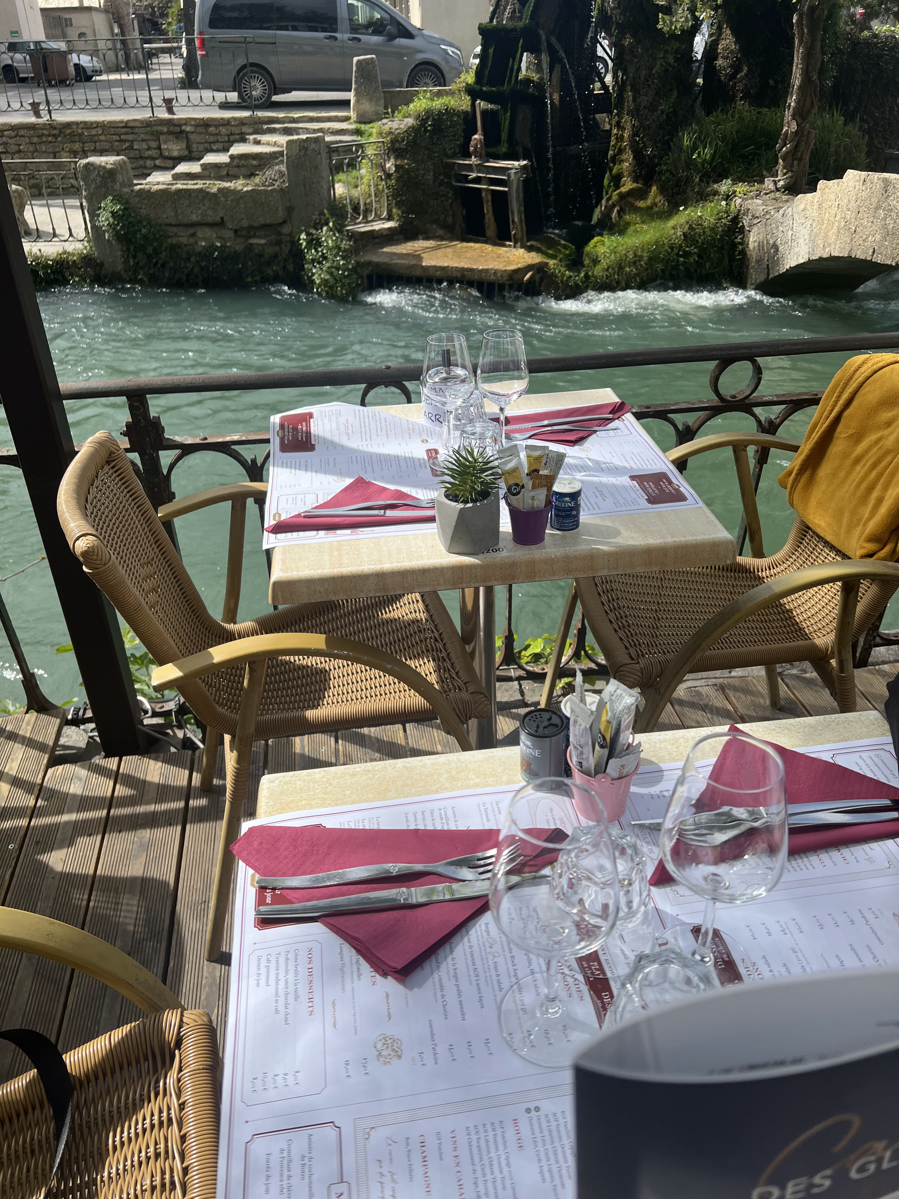 Arrivés sans réservation, on nous a trouvé une table malgré tout et juste à côté de la Sorgue et de la roue à eau ce qui ne gâche rien !!! Accueil parfait et très agréable, service idem. Le tartare est excellent. Le plat du jour (suprême de volaille) fabuleux et le tiramisu spéculos une véritable merveille !!!! Tout ça pour des prix plus que raisonnable. Je recommande vivement.
