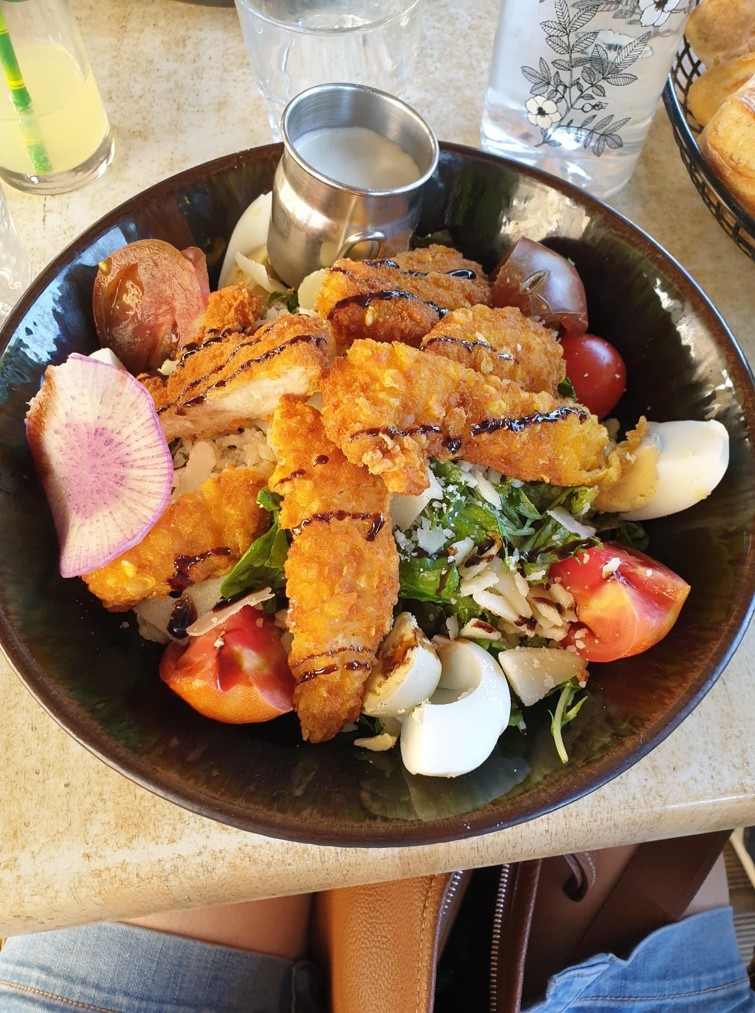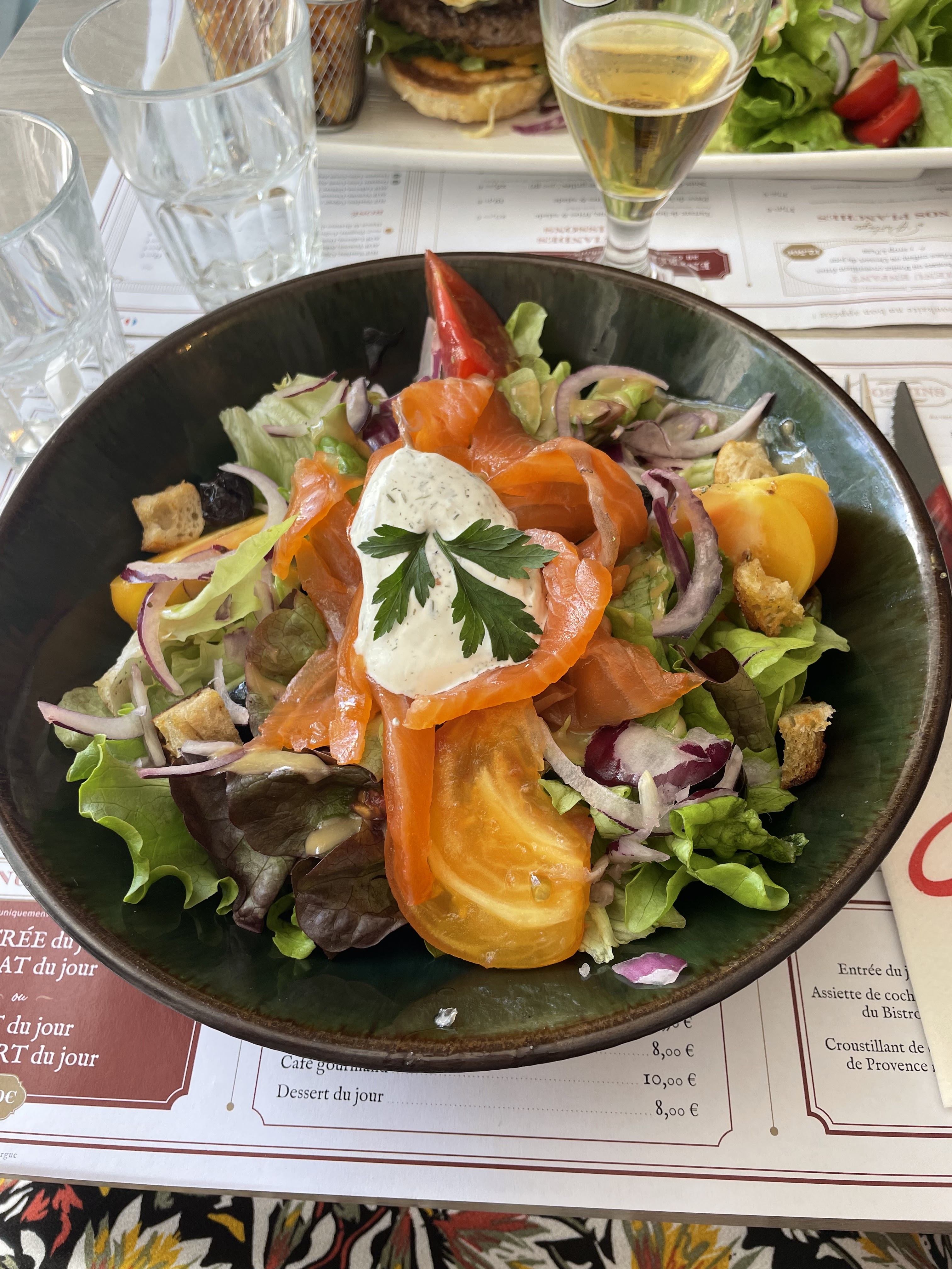 Arrive à 14h00 pour le déjeuner , Un accueil chaleureux par je suppose le patron , souriant qui accueille avec un grand plaisir , la salade Bergère un délice !! La sauce délicieuse la salade incroyable et le service impeccable . Je recommande fortement le lieu.