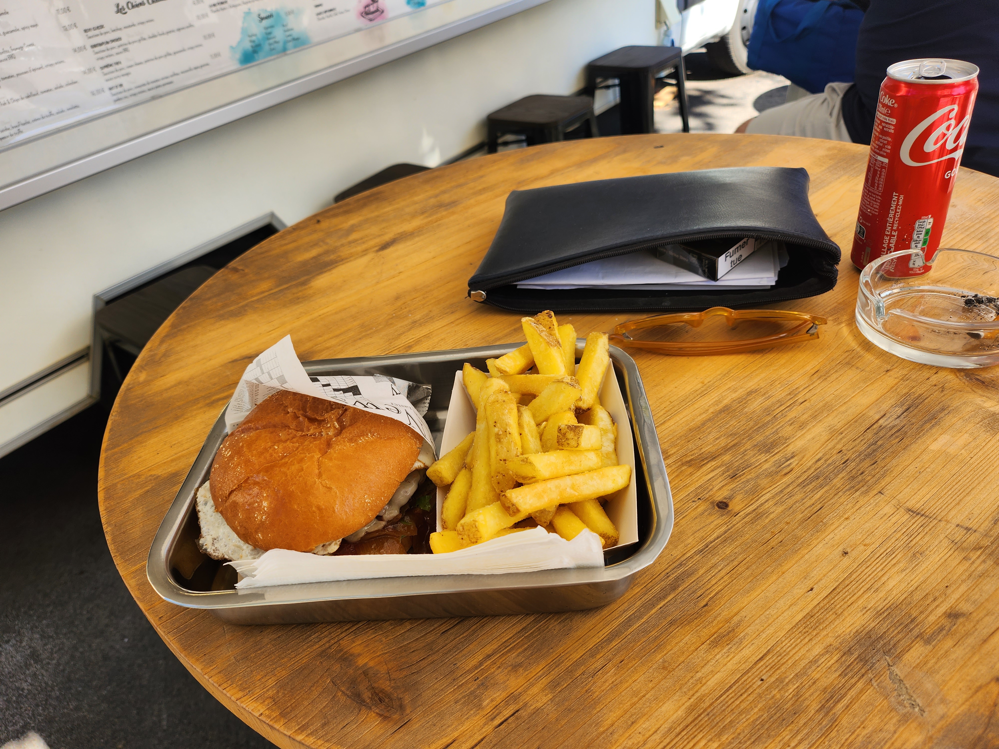 Tout très bien, excellent burger, l'emplacement est pratique si on souhaite juste s'arrêter pour prendre à emporter, le plus les tables pour manger sur place. Un accueil au top !