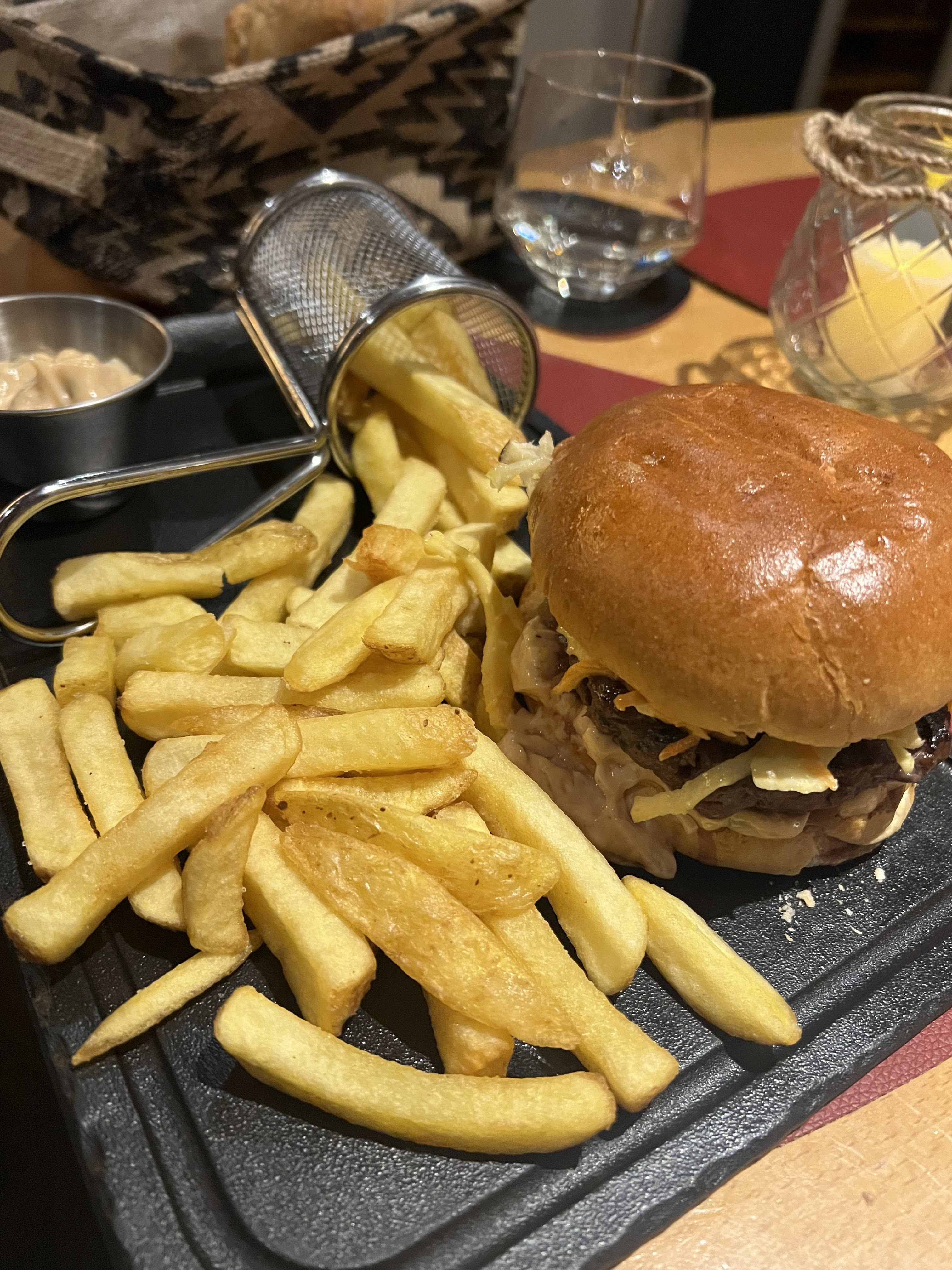 Très bon restaurant, le service est excellent et très sympathique ! La nourriture est bonne et savoureuse. Le burger ne peut pas être mangé sans fourchette ni couteau 🤦♂️ le pain est bon mais se brise. Le gratin pourrait être amélioré, le poulet savoureux !