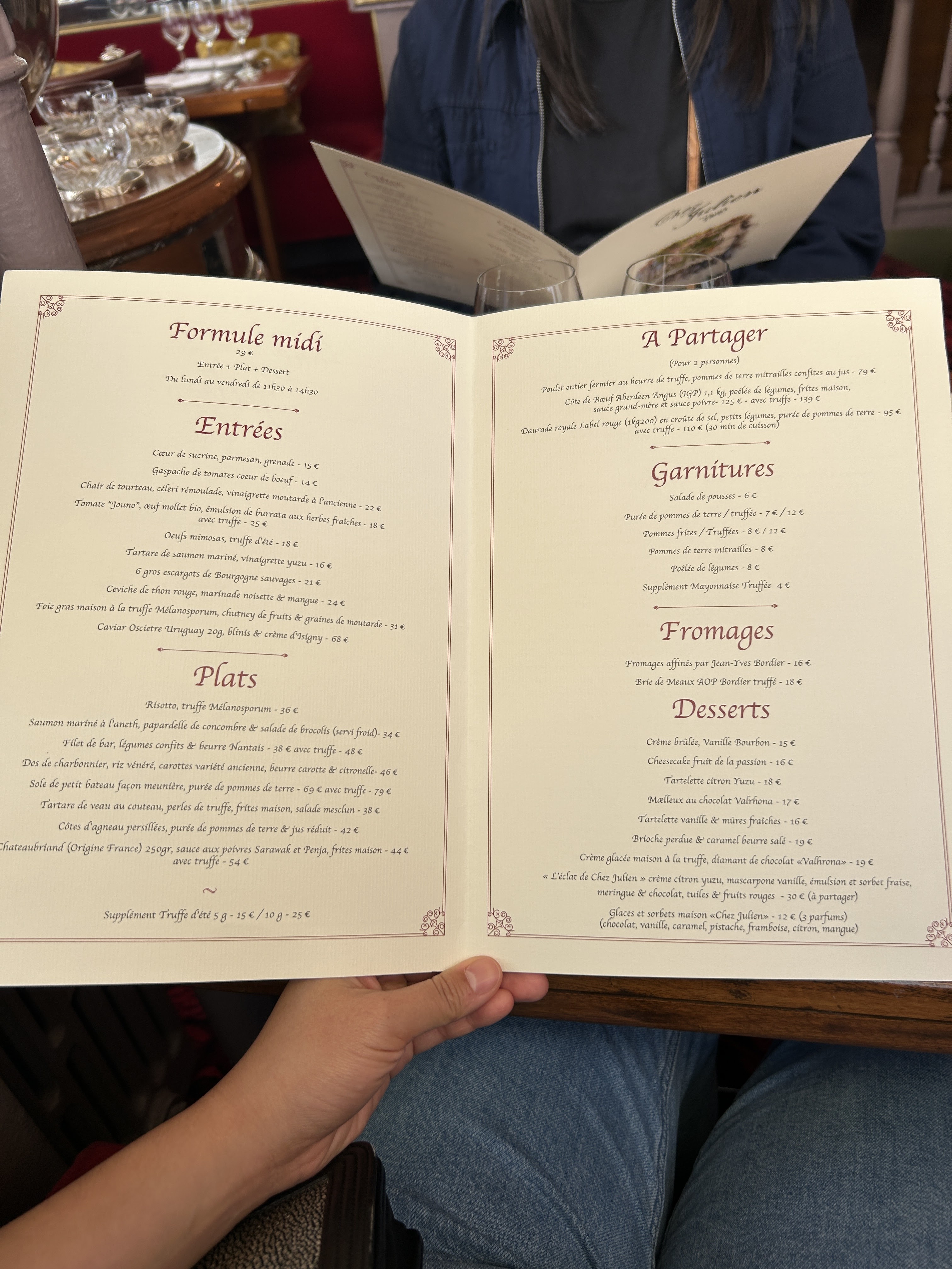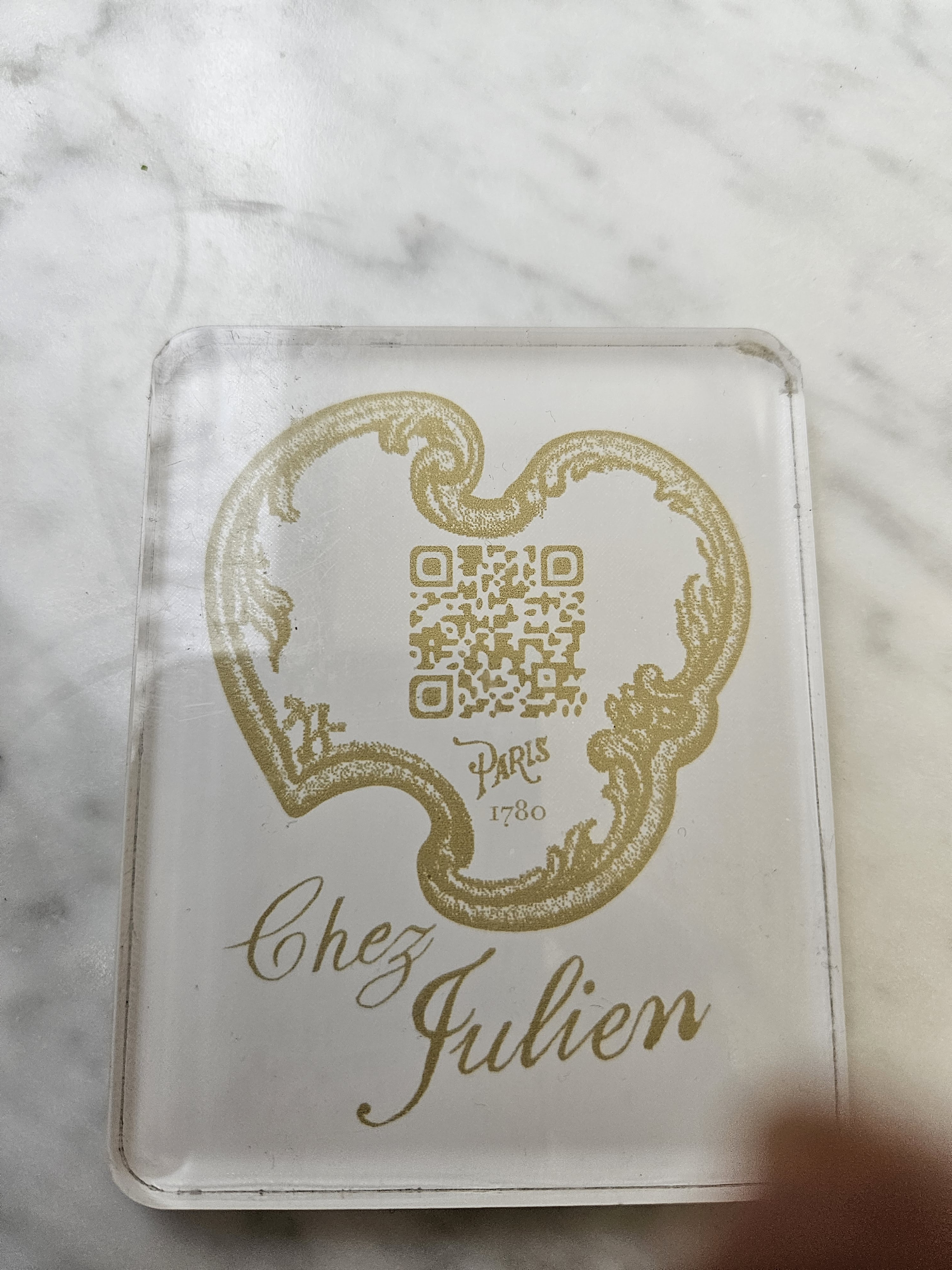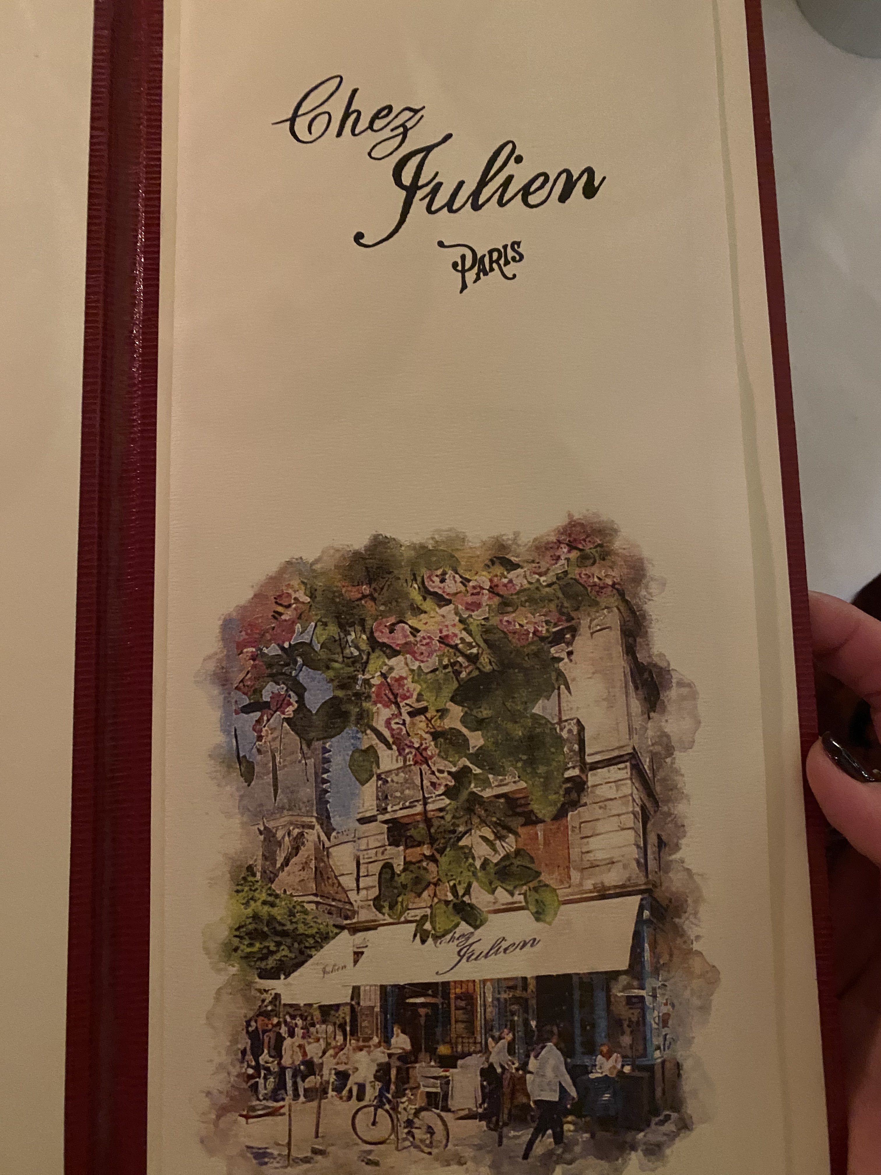 C'était mon dîner à Paris ! Nos quatre repas étaient beaux et délicieux. Tout le personnel était heureux, amusant et très attentionné. 10 sur 10 recommandent Chez Julien. Un incontournable à Paris.