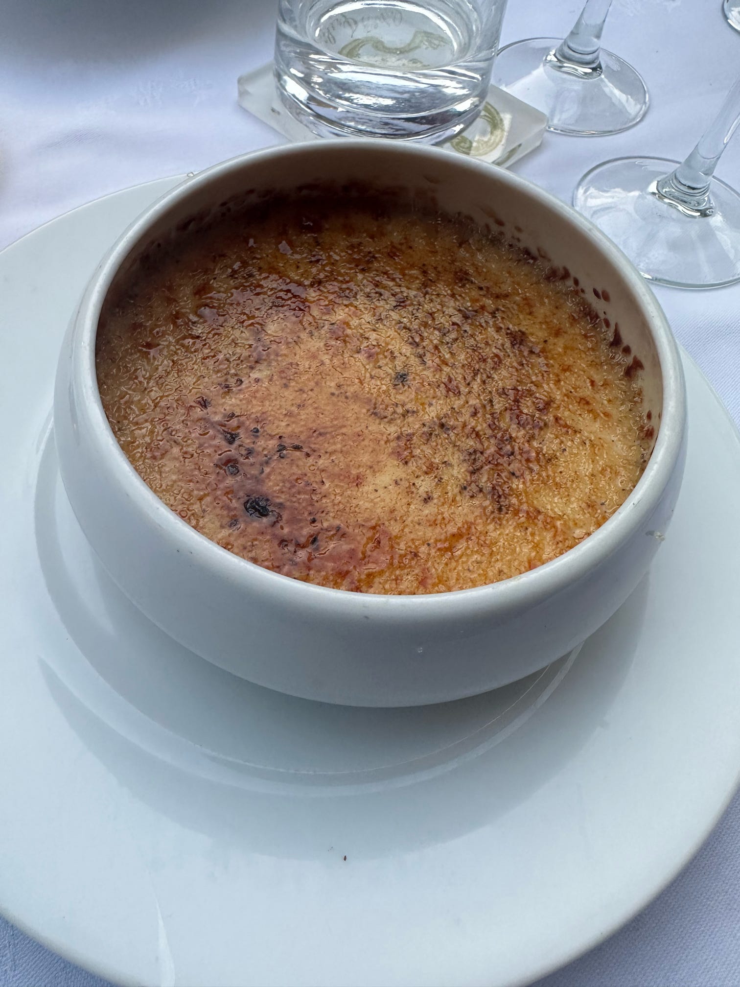 La cuisine française par excellence ! Nous avons eu la chance d'avoir le siège le plus proche de la fenêtre. Quelle vue avoir en se régalant de plats français classiques comme la soupe aux champignons, le steak et les frites, et bien sûr une riche crème brûlée. Les prix sont plus élevés, mais si l'on tient compte de l'expérience avec le personnel formidable, cela en valait vraiment la peine !