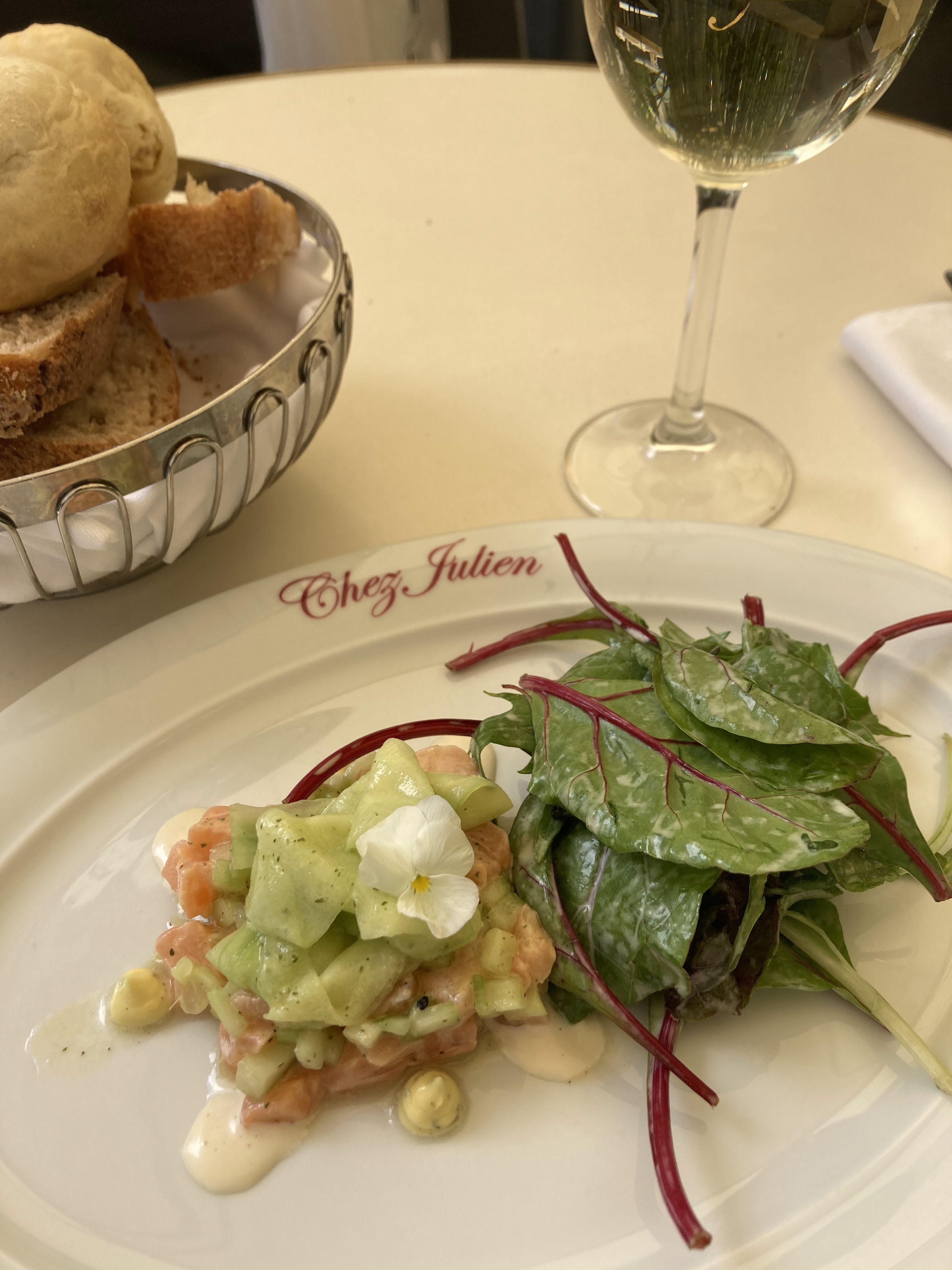 Chez Julien c’est LE restaurant parisien par excellence, tout est frais et bon et on peut déjeuner à toute heure. Nous avons déjeuné à 16h en terrasse, c’était un moment merveilleux avec un service aux petits soins. Le bar en croute de sel était incroyable. Tous les plats sont délicieux.
