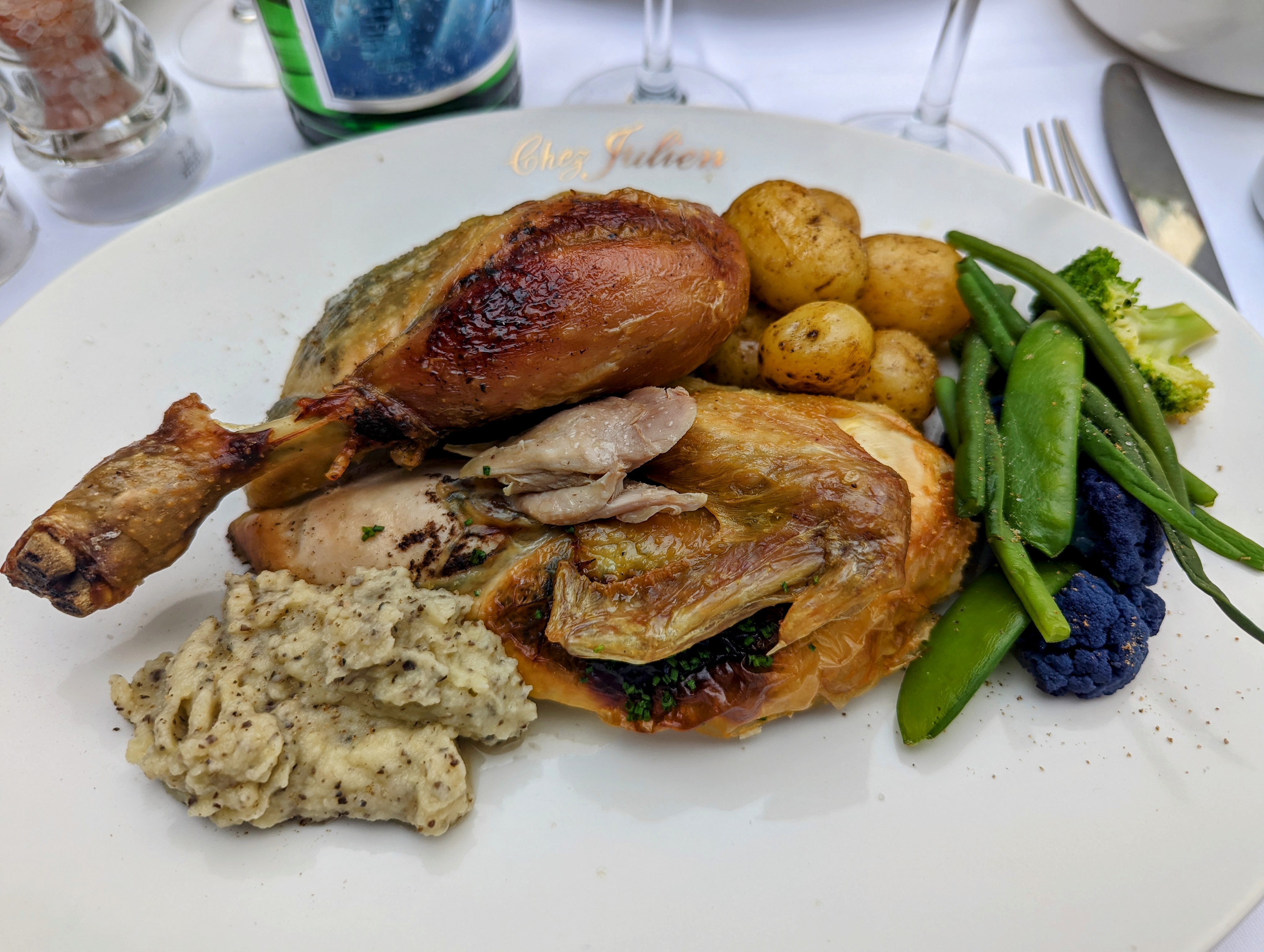 Verrière garde bien le chaud et est super pour un déjeuner. Nous avions une envie de truffe et tous les plats étaient bons. Le poulet entier était tendre et j’ai fini ma part ;)
