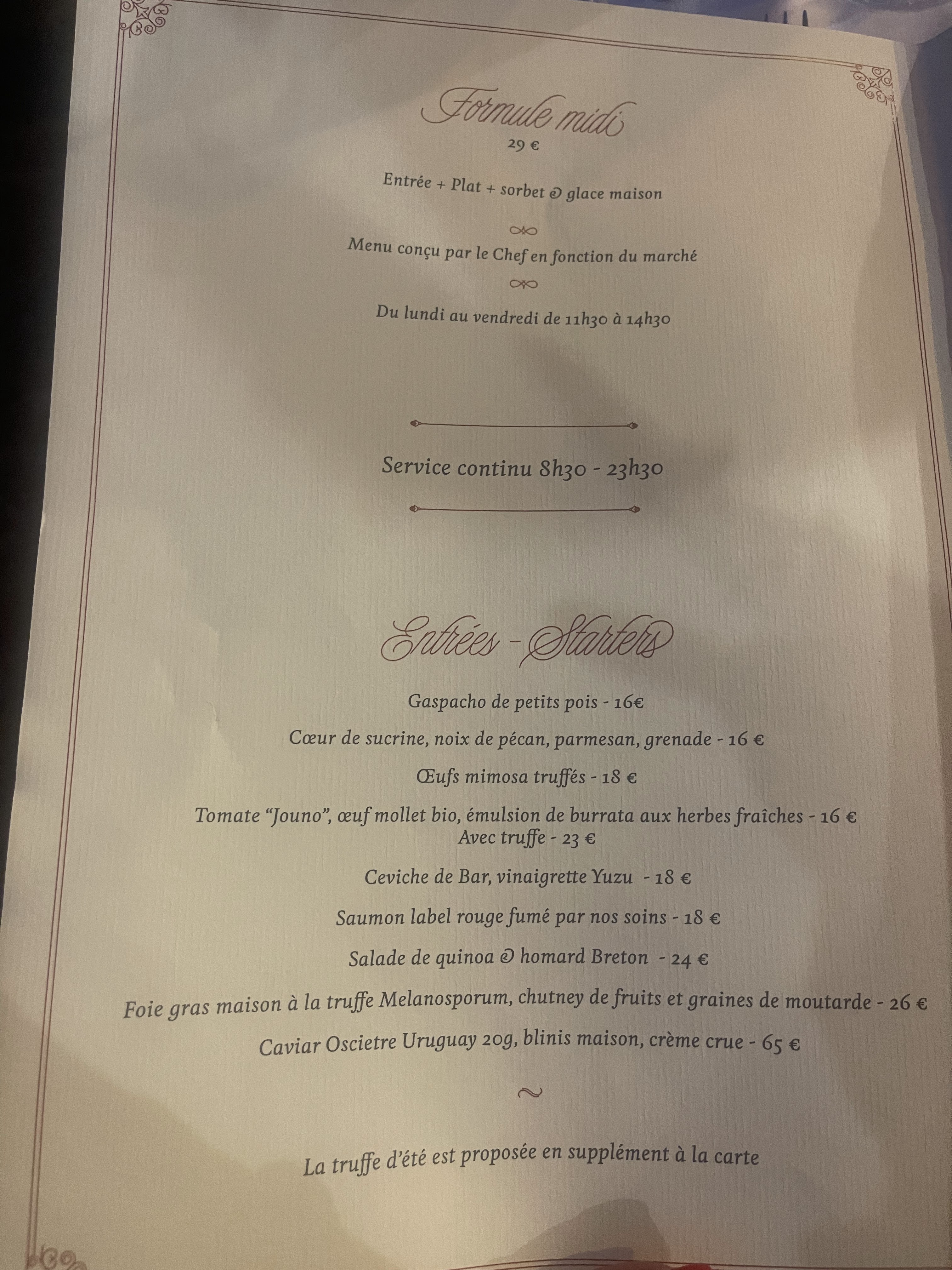 Superbe déjeuner en terrasse malgré un temps d’août assez capricieux. Un service parfait et respectueux des règles sanitaires. L’endroit appelle à prendre son temps et donne l’impression de faire un saut dans un Paris d’antan. Très belle carte franchouillarde pour une adresse Costes. Merveilleux tartare de veau, perles de truffes et parmesan. Très belle salade de sucrine, pécan et grenade en entrée. Je recommande vivement!