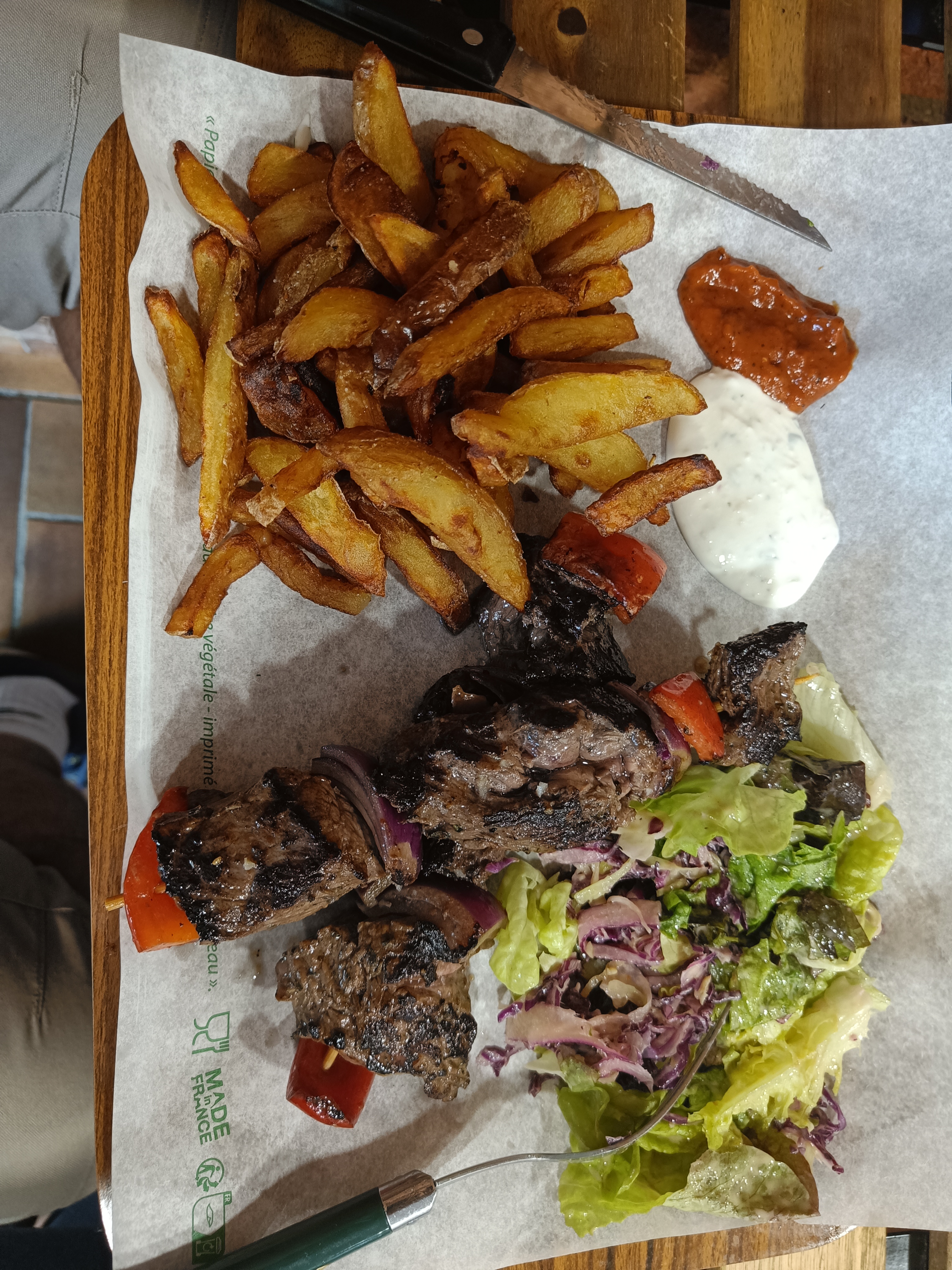 Accueil souriant.. Nous étions 3 et nous avons choisi... 1-Burger polledpork (viande de porc mariné) Excellent! avec des frites maison Extra je recommande... 2-Plat: riz avec une sauce crémeuse du poulet croustillant et une sauce piquante..Très bon! 3-Deux brochettes 1 au bœuf 1 au poulet accompagnées de frites, de riz et de salade D'excellents produits..frais ! Nous avons passé un agréable moment...Nous reviendrons avec plaisir !!