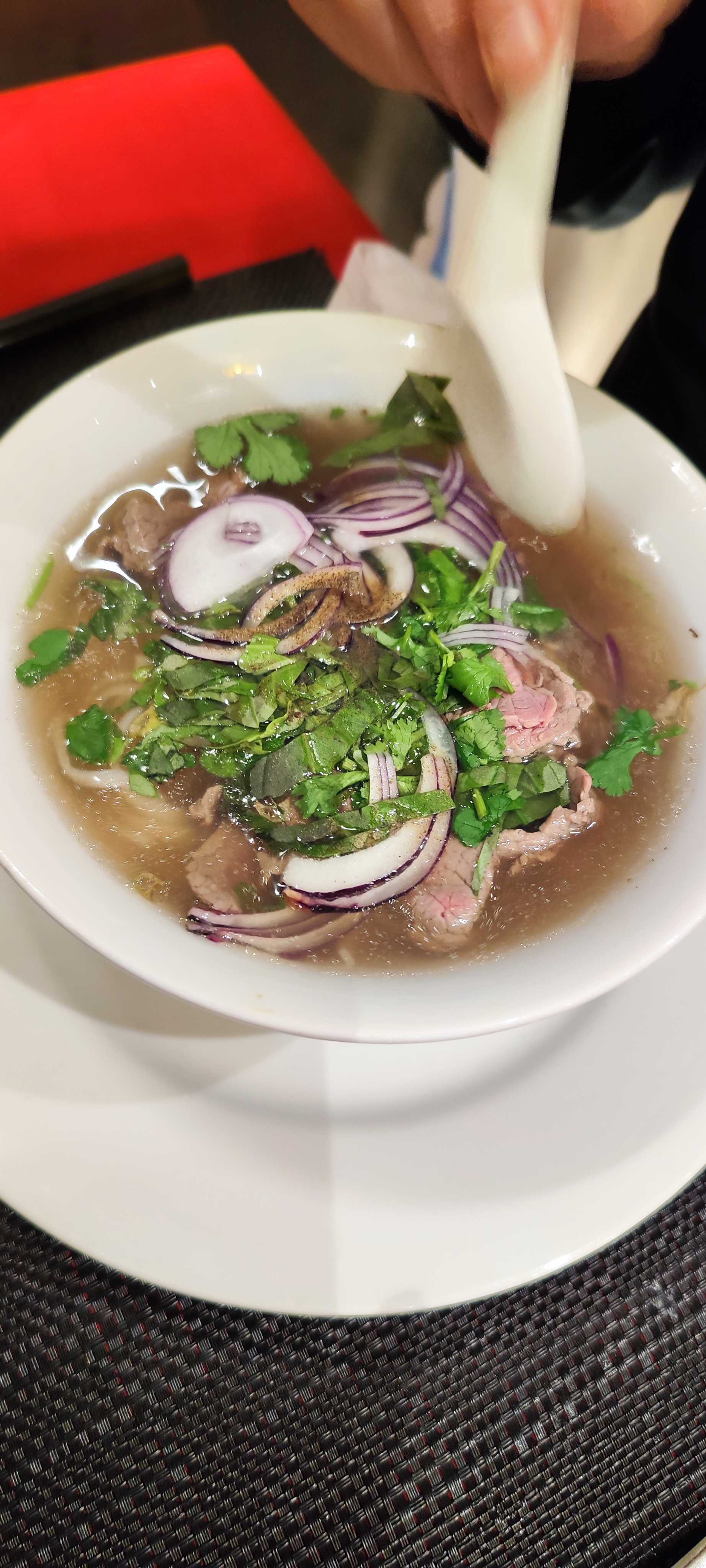 Potage Pho excellent. Certain plat beaucoup trop cher à mon goût