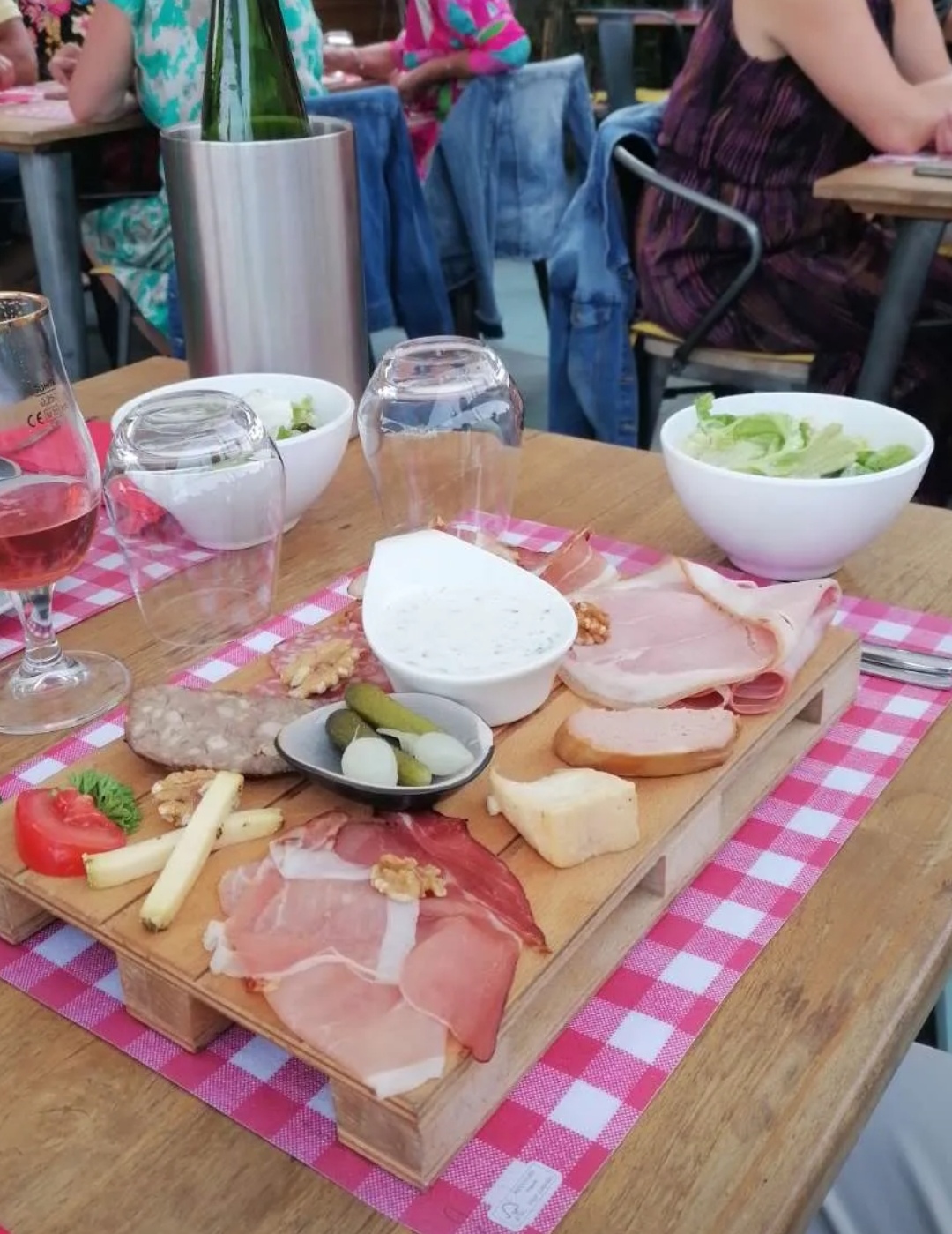 Très bien repas campagnard la charcuterie très bonne variée et copieuse les pommes de terre rôties aussi salade fromage et une délicieuse crème brûlée nous avons passé une très bonne soirée à recommander vous ne serez pas déçus