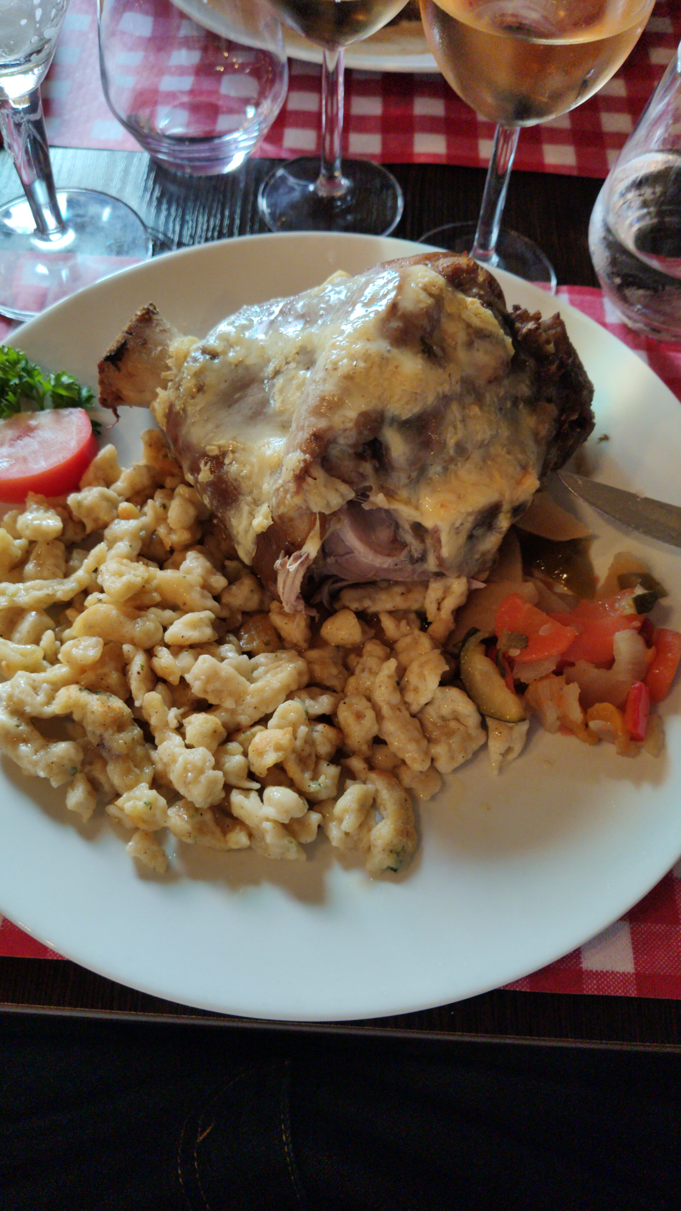 Baeckenhof en famille c'etais super bon ! Je recommande. Servis avec du raifort et de la moutarde, une petite salade. La serveuse nous a même servis la premiere fois ça été super apprécié
