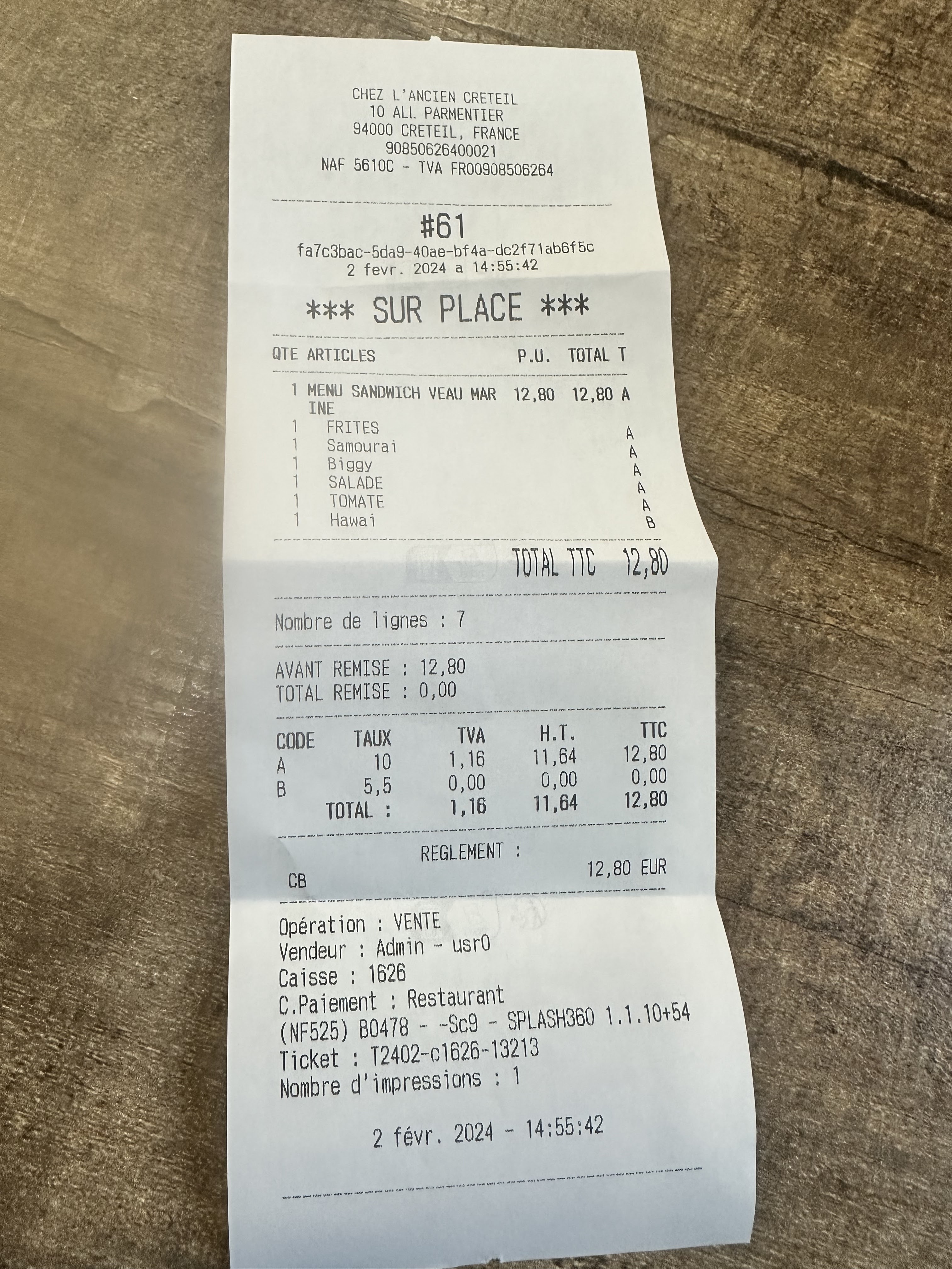 12€ pour un sandwich vraiment pas ouf. On dirait la demi baguette de chez Aldi à 0.29€ + un rajout d’une viande de très basse qualité, mariné et avec une tonne de sauce. Ne prend pas la carte ticket resto. Autant aller dans une vraie boulangerie si on veut un Sandwich.