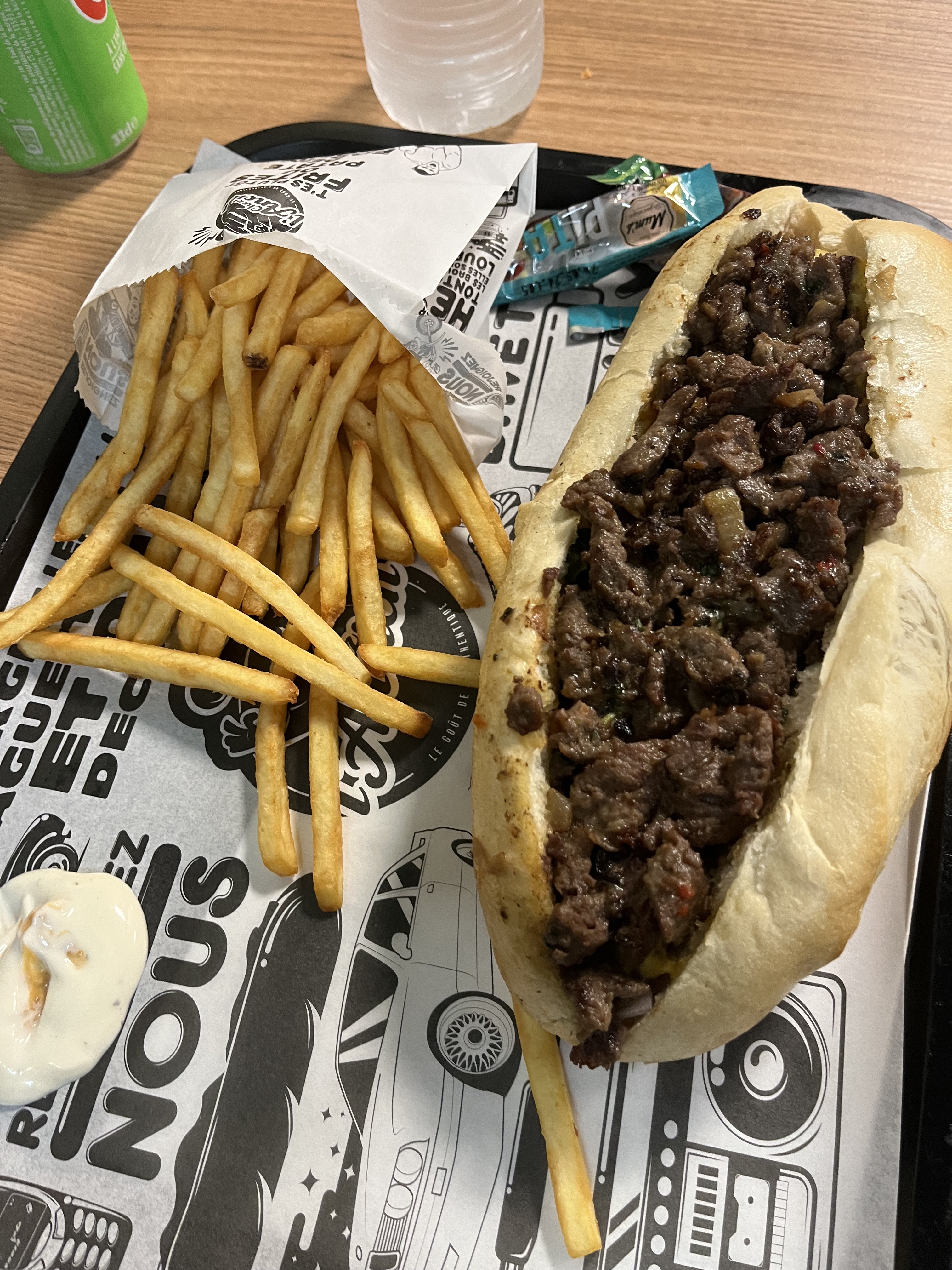 Un service client au top, la gentille serveuse nous a conseillé ainsi que le gérant! Je recommande la viande est de qualité et malgré les commentaires j’ai trouvé le prix à hauteur de la qualité du produit. Et les frites sont excellentes !!! Vous payez 10€ un menu McDo froid qui cale pas mais pour de la viande halal de qualité et bien assaisonnée certains pleures …. En tout cas je recommande à 100% et j’y retournerais