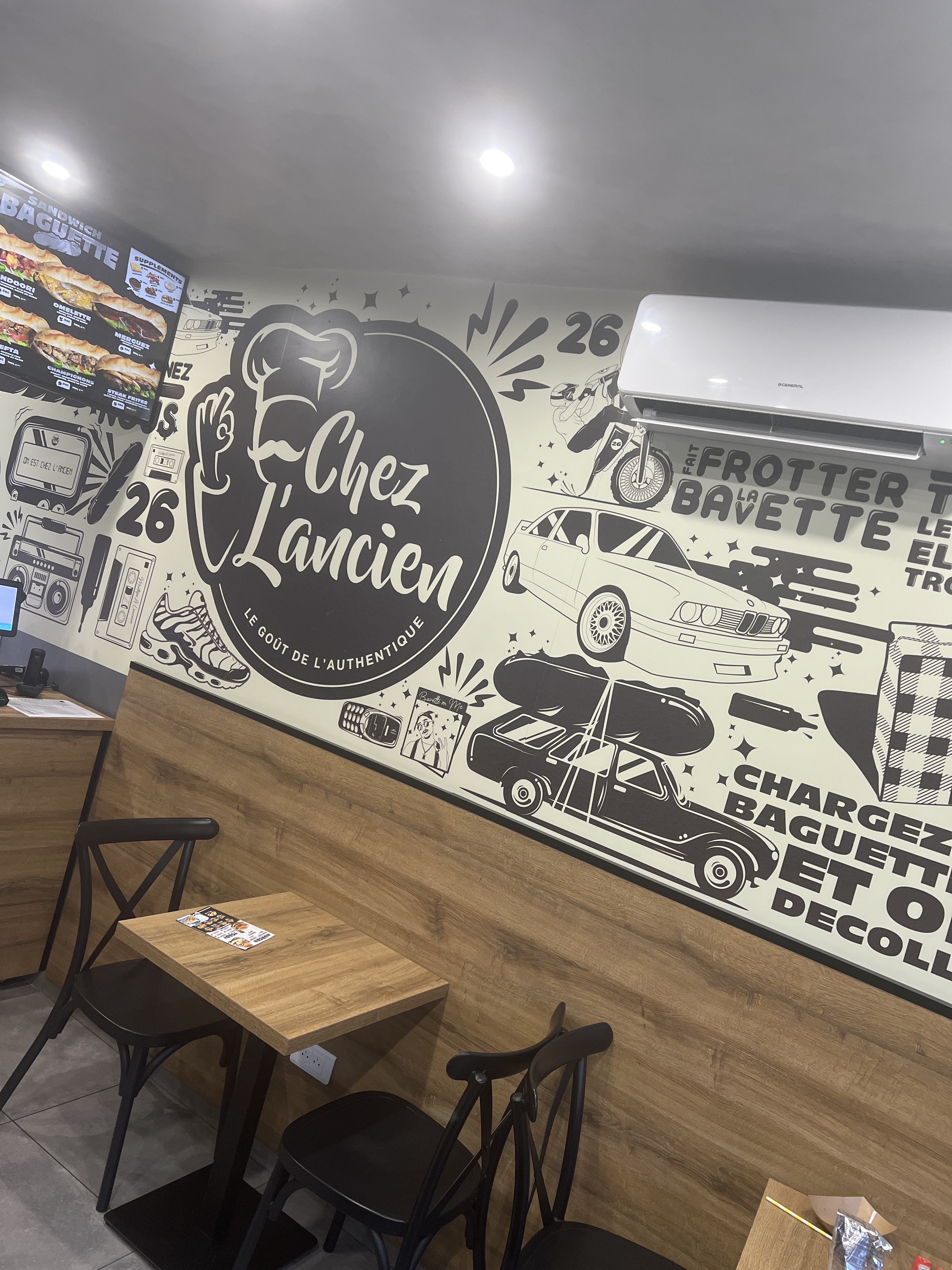 Franchement malgré l’attente 1h pour manger de bon sandwich baguette parfaitement garnis 🤩🤩 rien à ajoute dommage pas plus de place assise 😌