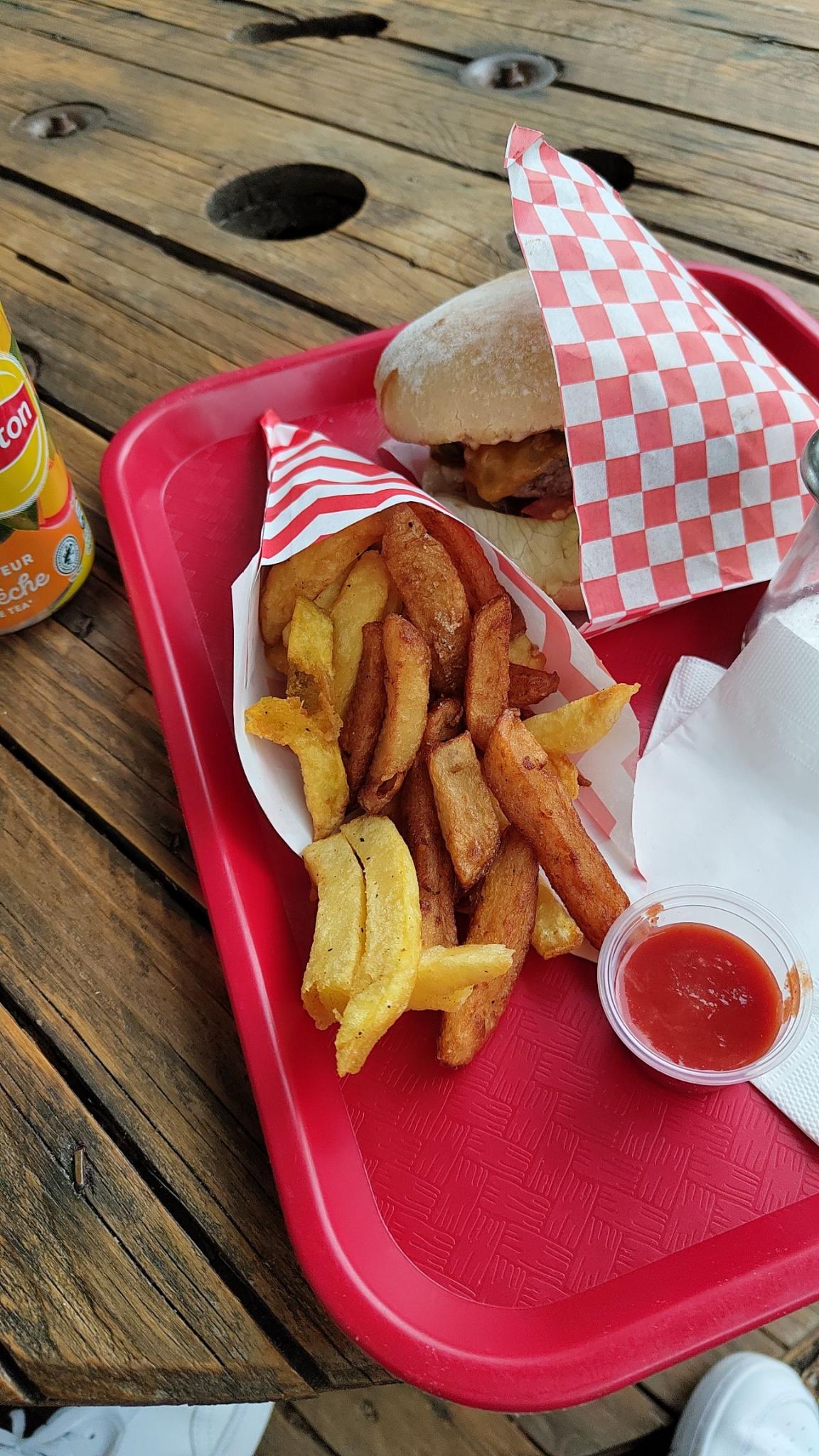 Arrêtés hier à tout hasard lors d'un tour de vélo et trop contents ! Humainement super sympa, ça fait vraiment plaisir des gens comme ça :) Et ses burgers/frites sont justes incroyables !! Les produits sont frais, vraiment on recommande à 100%!