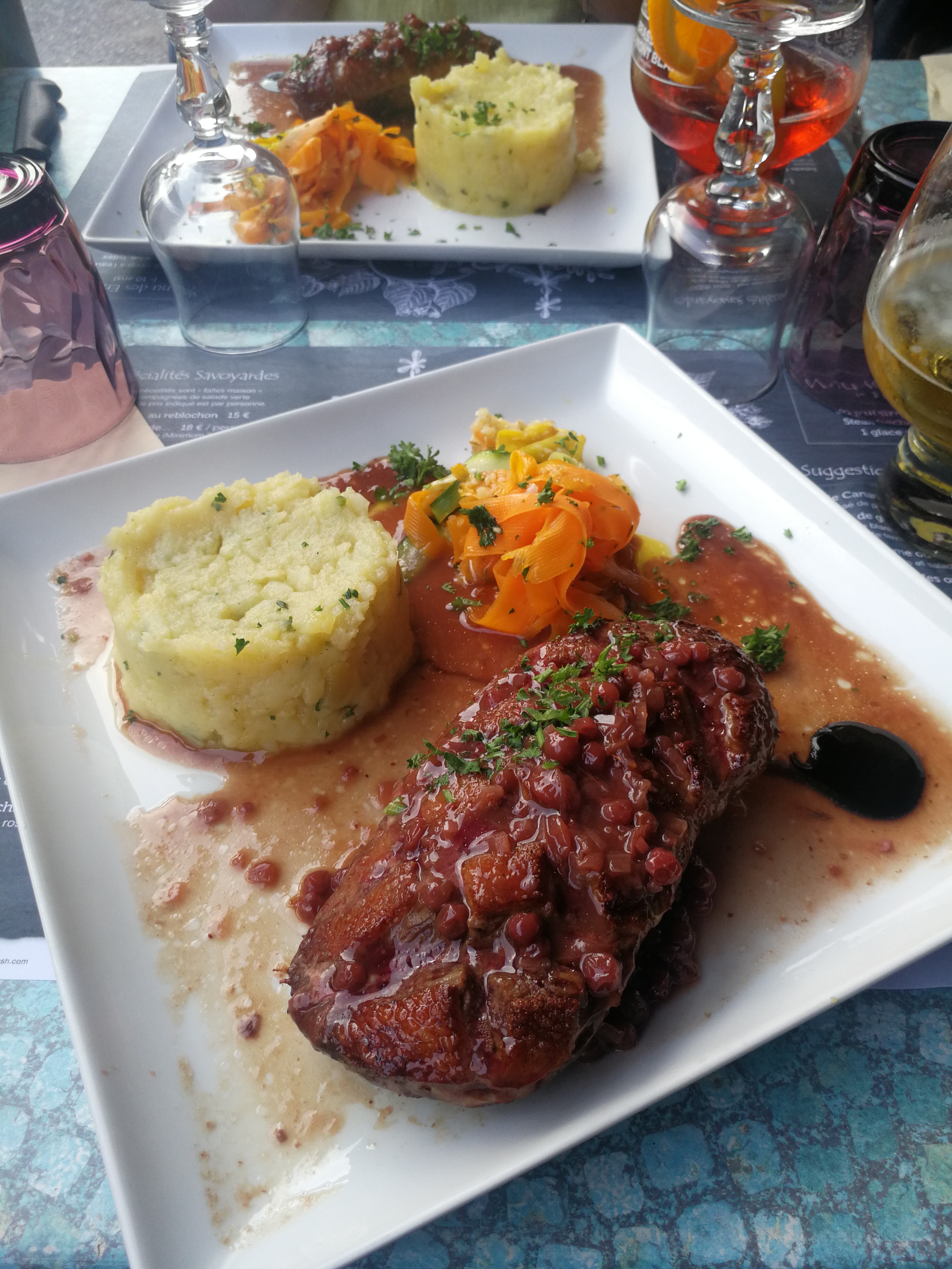 Un très bon restaurant, qui ne paye pas de mine perché en hauteur avec une terrasse. Nous avons pris le magret de canard, très bien, excellent, copieux. Bref plat excellent. Que du bonheur