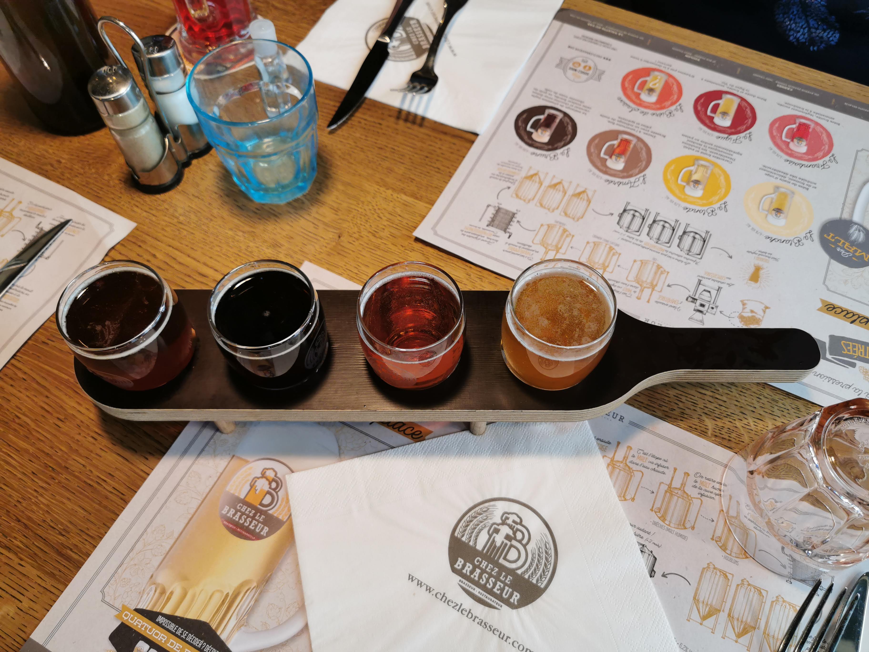 Disons-le franchement : aucun connaisseur et réel amateur de bière ne trouvera son compte. Je pense que l'on serait surpris de leur conception d'ailleurs. J'imagine très volontiers une base similaire pour toutes, puis on ajoute des arômes et du colorant. C'est flagrant, et légèrement abusé (autorisé ?). La nourriture est bonne, le cadre est super, et très orienté événement sportif. Même les toilettes sont sympas. Mais la bière, quand on s'appelle Le Brasseur, c'est irrespectueux.