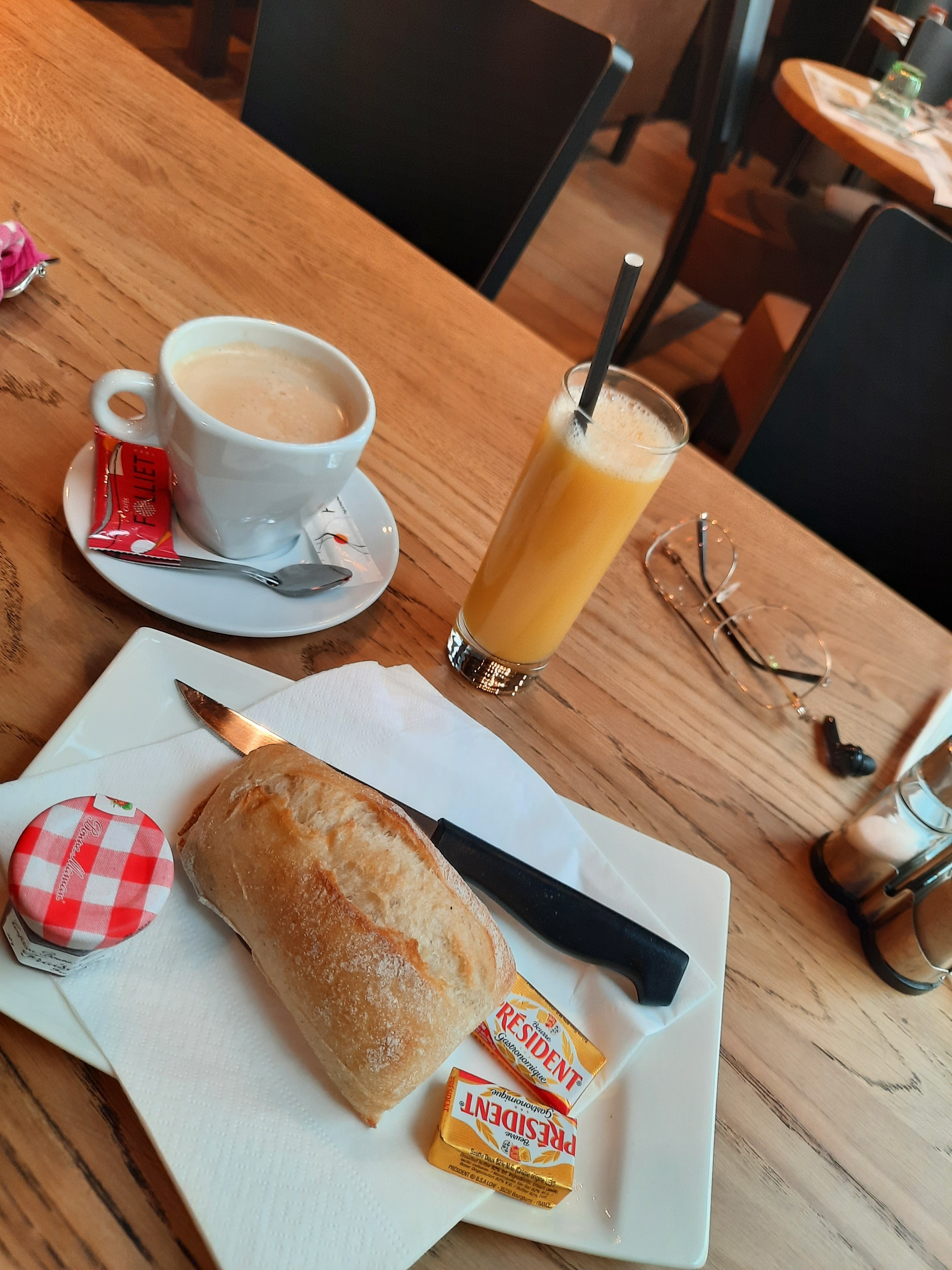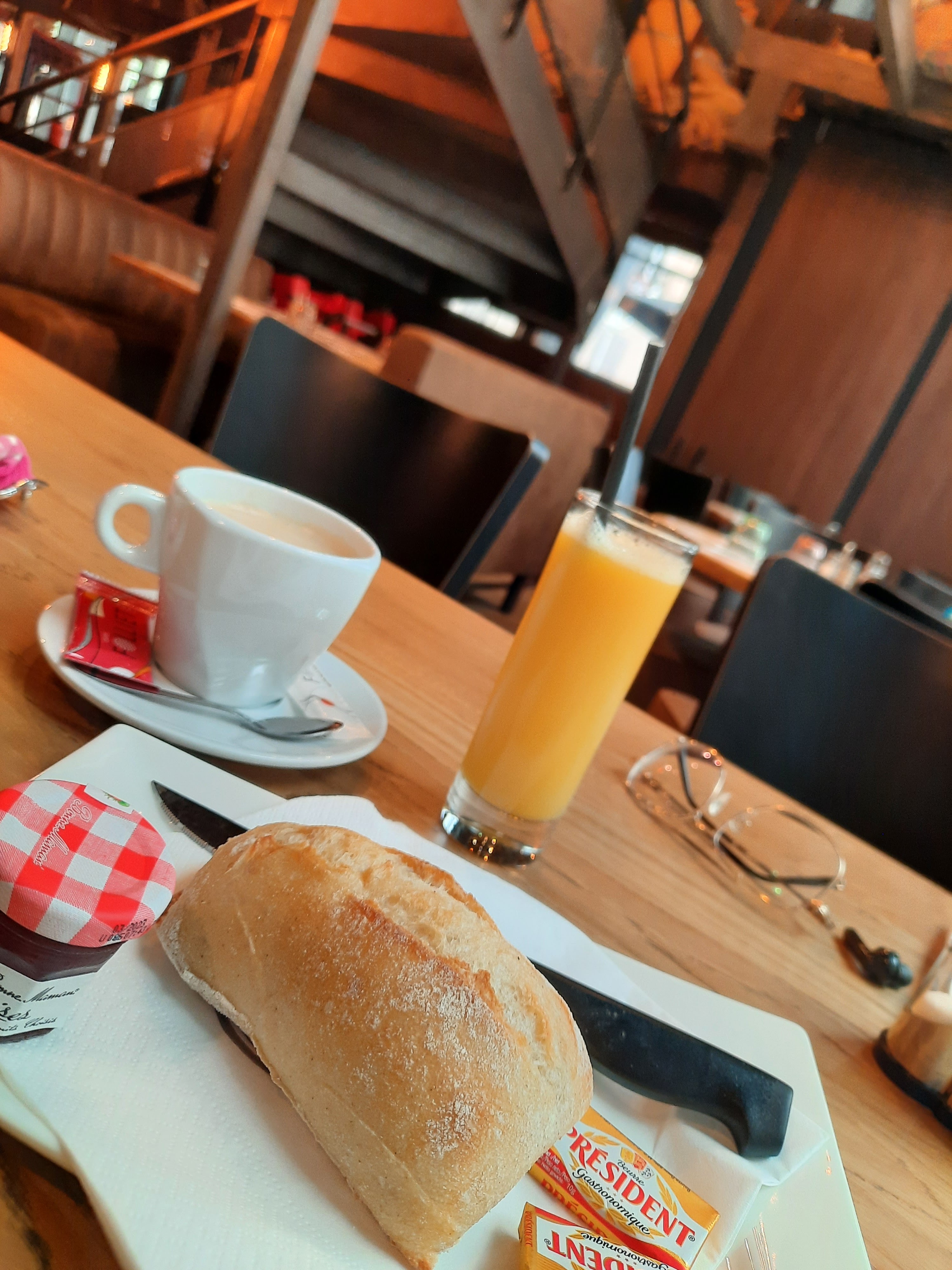 Je suis rentré pour boire un jus et un café et mon fils devait manger un croissant avant d'aller à l'hôpital la jeune fille nous a dit que c'était interdit de manger car ils font eux-mêmes à manger je me suis levé pour partir elle me dit mais c'est pas la peine de partir c'était la blague de la journée
