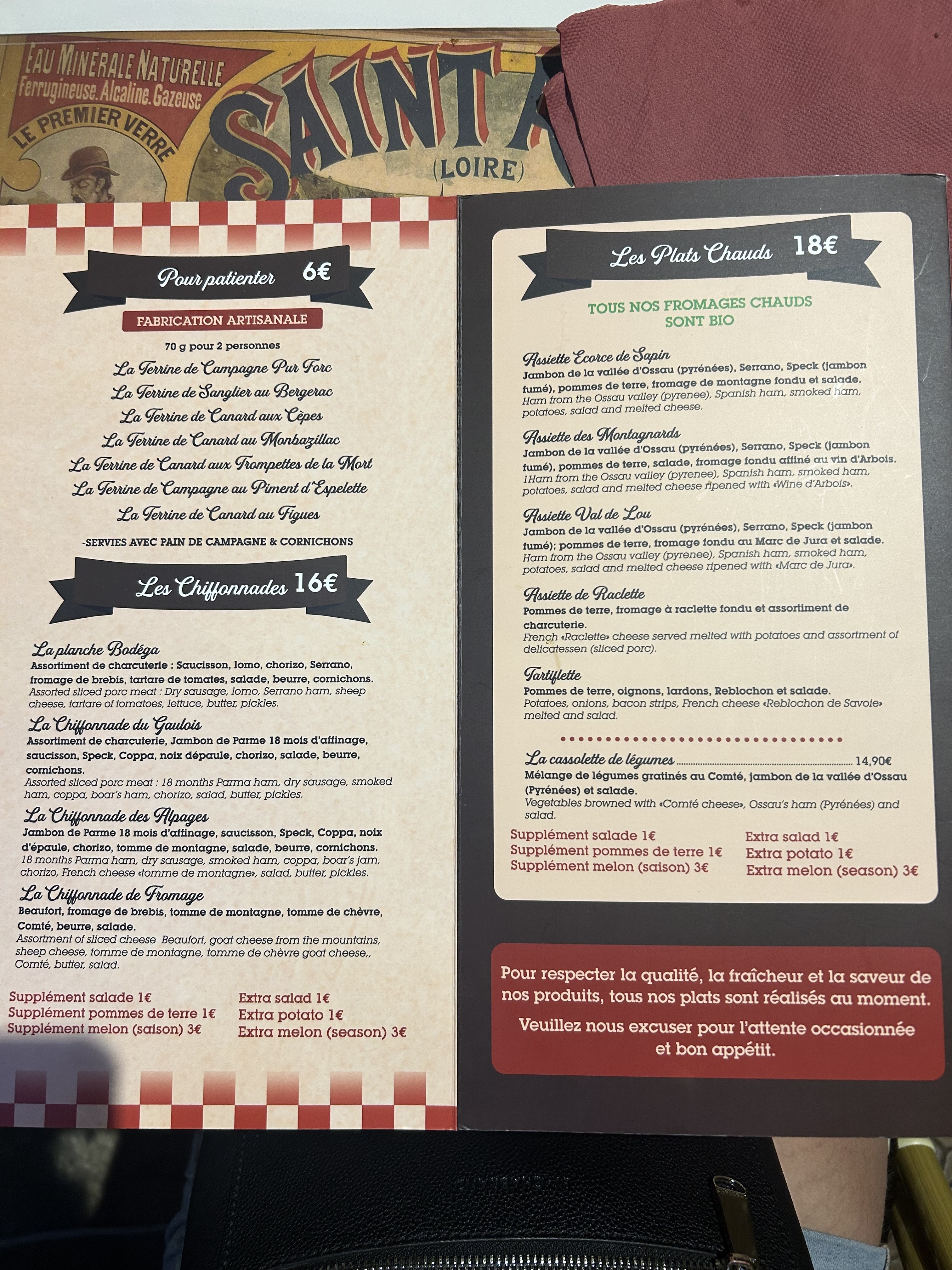 Je recommande si vous avez envie de manger qch d'autre que foie gras ou le canard. Les jambons er fromage au top !