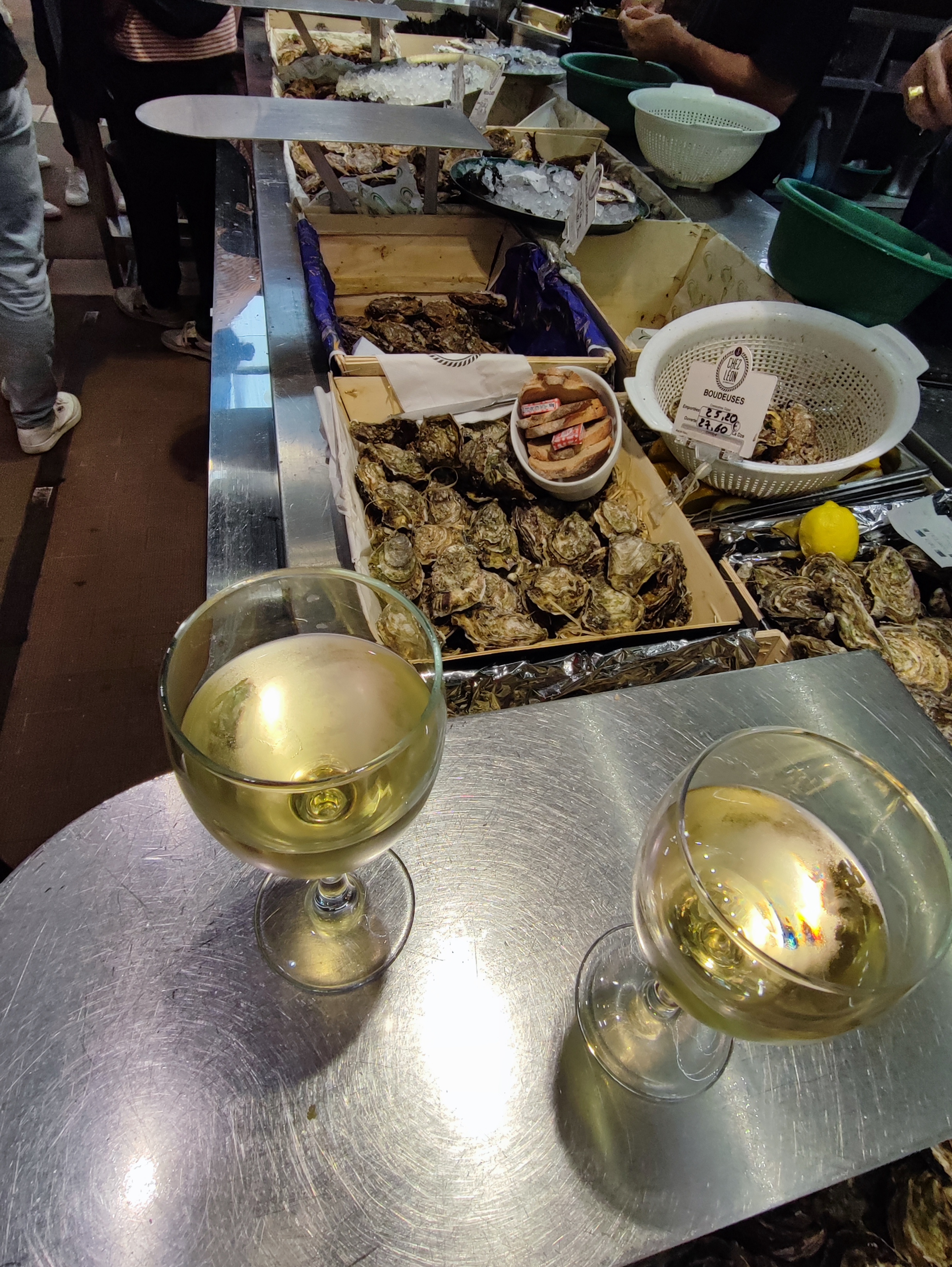 Ici c'est l'ambiance des Halles, surtout un vendredi veille de weekend de fêtes. Idéal pour déguster un plateau d'huîtres 👍 avec un pot de blanc 😋