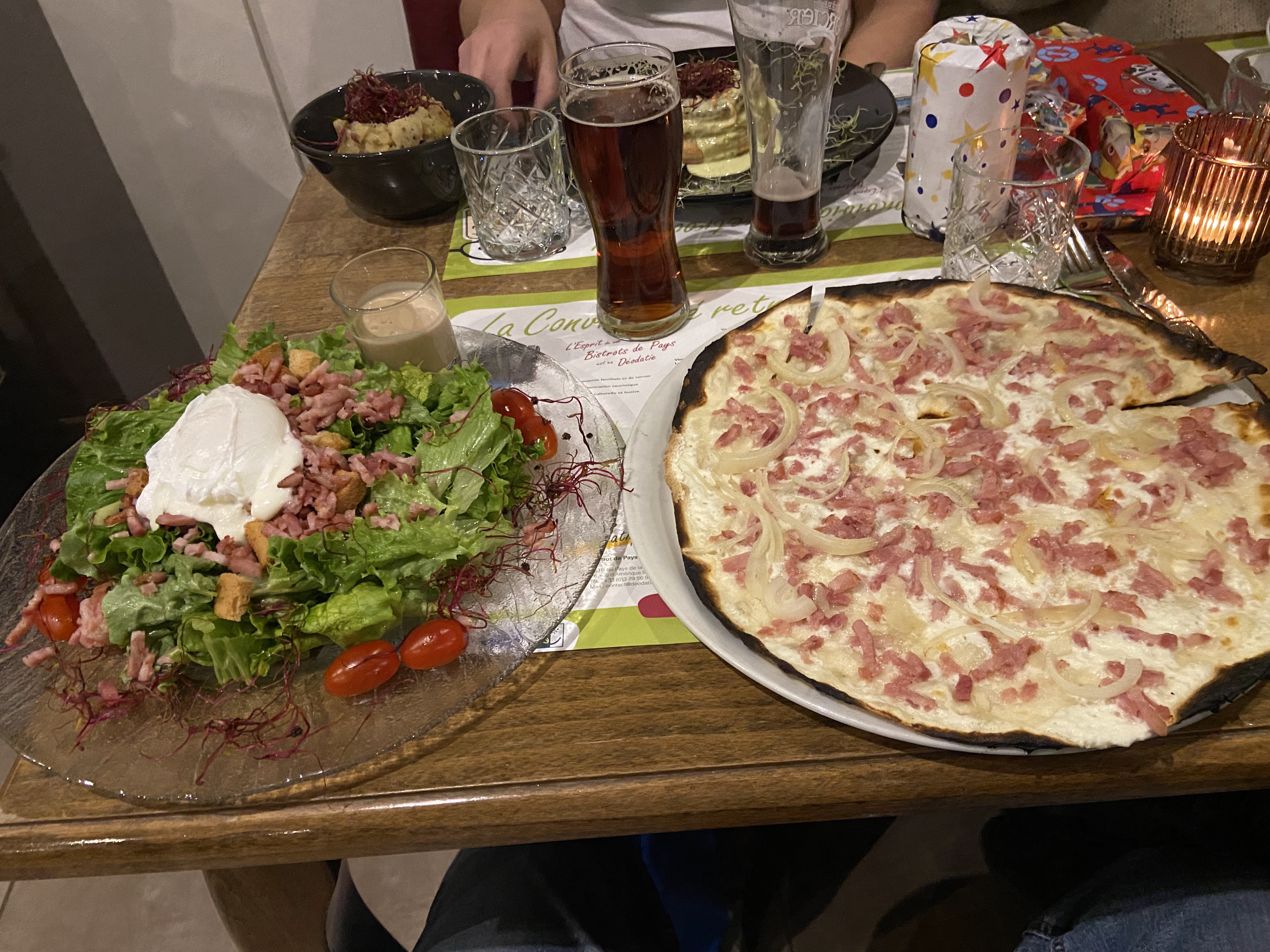 Tout était excellent ! Nous avons pris une tarte flambée gratinée en entrée puis un cordon bleu vosgien et un gratin de pommes de terres au Munster. Nous nous sommes régalés. Produits de qualité, bien cuisinés et personnel charmant. Nous reviendrons avec plaisir !