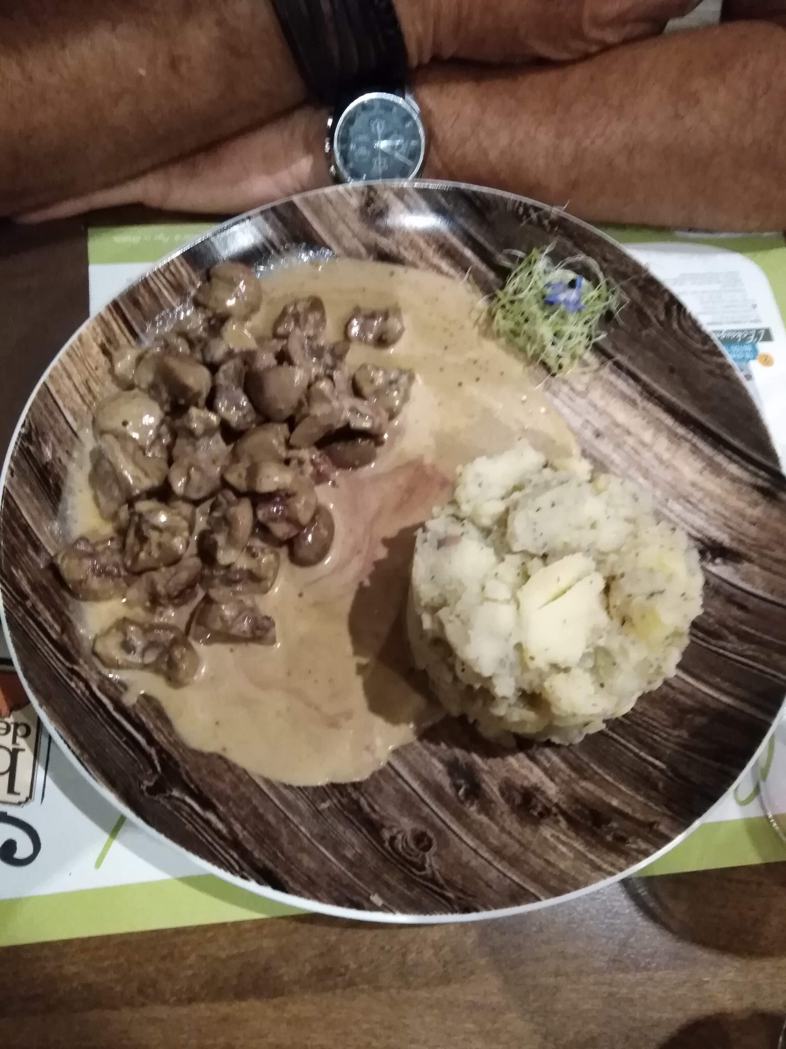 Menu très copieux assiette de charcuterie. Rognon de veau idem très bon . Très bon accueil et très gentille