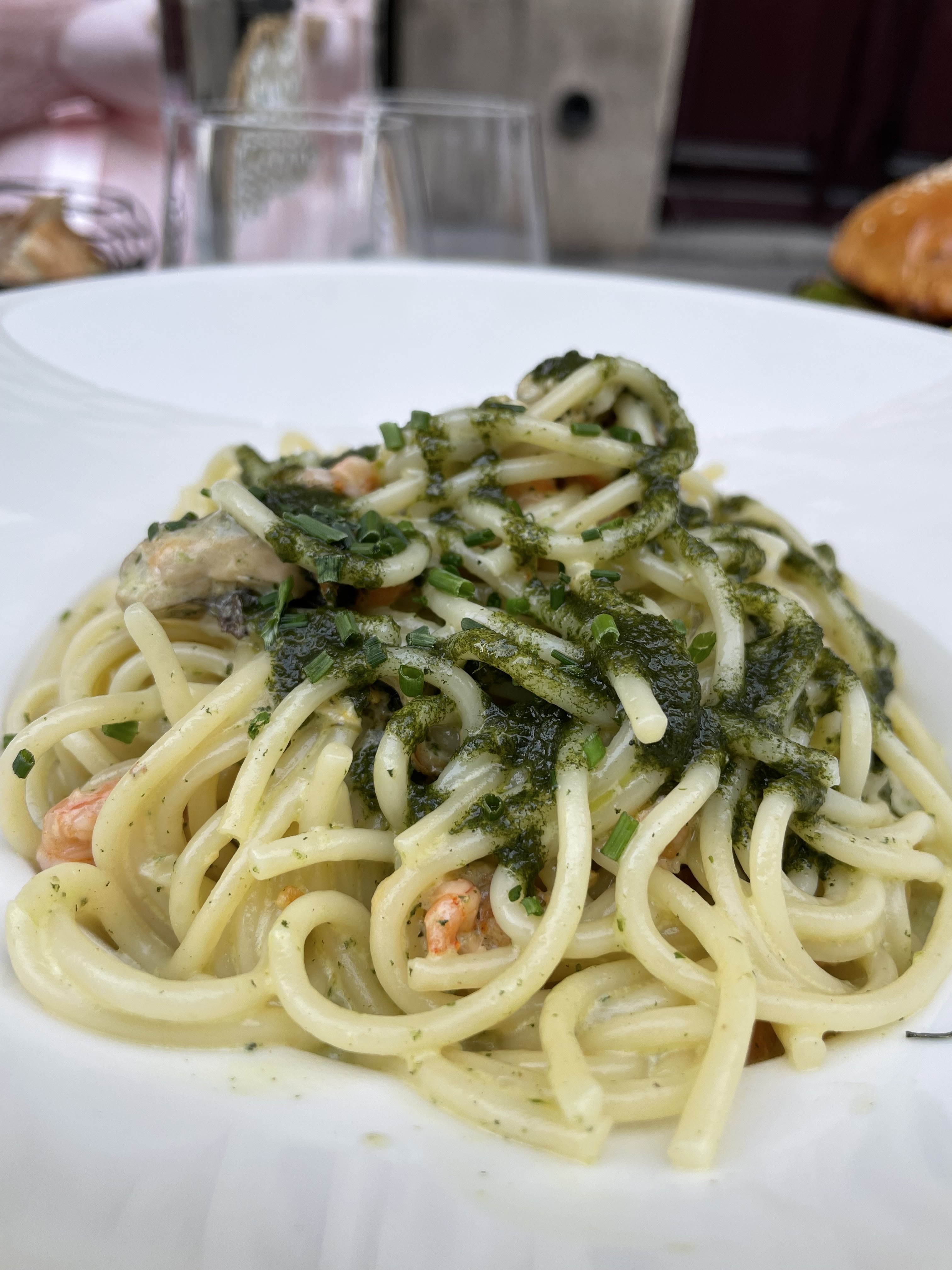 Personnel sympathique. Bonne nourriture. Super endroit pour s'asseoir dehors. Endroit relaxant et parfait pour regarder les gens. J'ai pris le steak tartare avec un verre de vin rouge